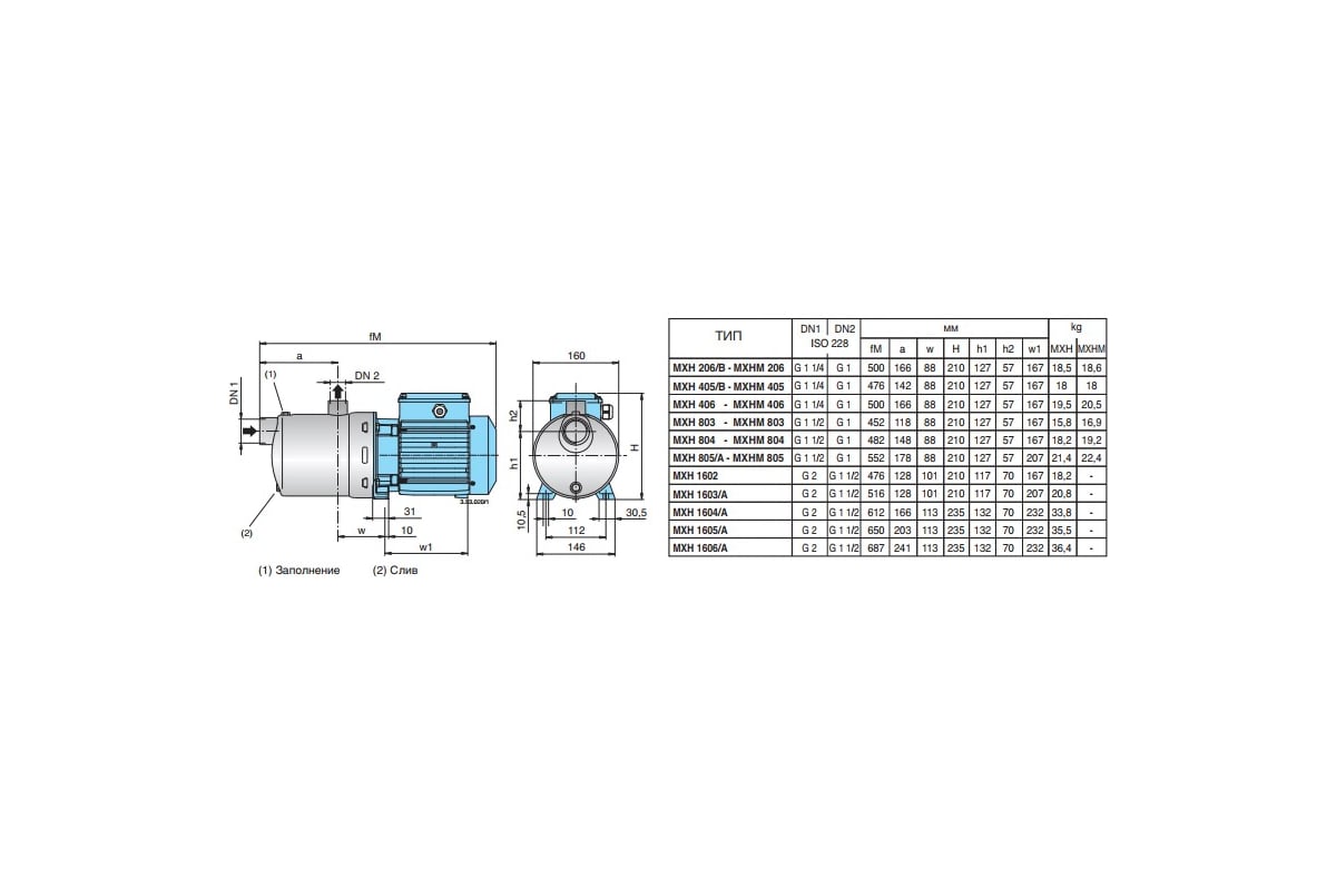 Компактная и прочная конструкция Calpeda MXH 1603/A 100381819 без выступающих фланцев;