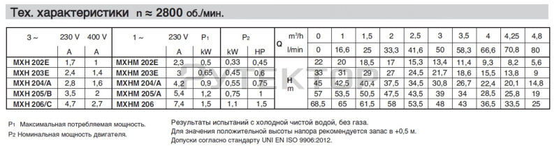 Горизонтальный насосный агрегат Calpeda MXH 204 - центробежный многоступенчатый. Выполнен в виде моноблочной конструкции. Корпус насоса и детали проточной части выполнены из нержавеющей стали.