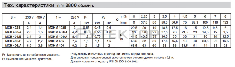 Горизонтальный насосный агрегат Calpeda MXH 404 - центробежный многоступенчатый. Выполнен в виде моноблочной конструкции. Корпус насоса и детали проточной части выполнены из нержавеющей стали.