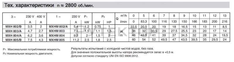 Горизонтальный насосный агрегат Calpeda MXH 803 - центробежный многоступенчатый. Выполнен в виде моноблочной конструкции. Корпус насоса и детали проточной части выполнены из нержавеющей стали.