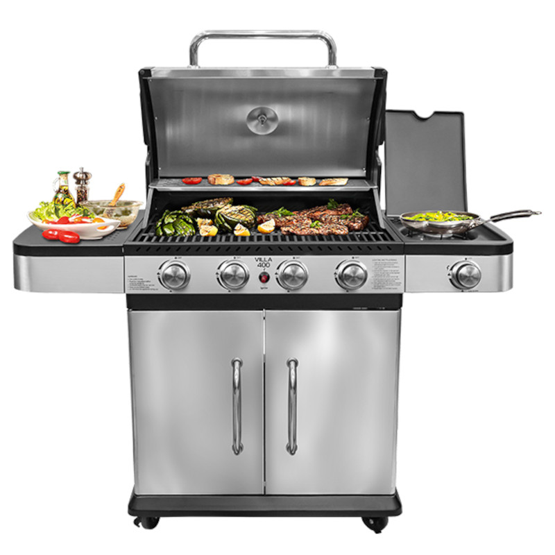 Гриль газовый BELLAGIO Villa 400 Silver с 4 конфорками – отличный выбор для приготовления самых сочных, аппетитных и ароматных блюд на большую компанию. Газовый гриль VILLA 400 Silver приятно удивит вас надежной работой, производительностью и превосходным нагревом, в сочетании с комфортной и простой эксплуатацией. В этом гриле есть все, чтобы готовить вкусно и много!