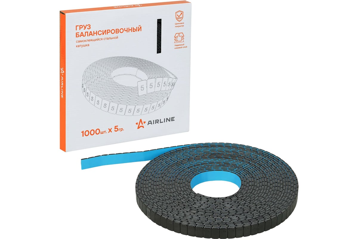 Груз балансировочный самоклеящийся стальной 1000x5гр, катушка, черный AIRLINE ATRK203