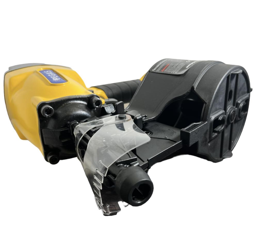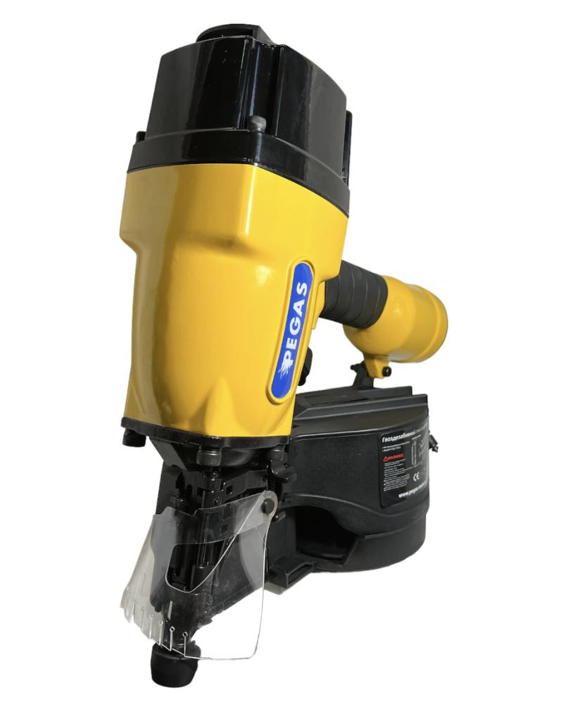 Гвоздезабивной пистолет Pegas pneumatic C90 предназначен для забивания барабанных гвоздей длиной 40-90 мм. Хорошо сбалансированный по весу пистолет позволяет забивать гвозди с высокой скоростью. Оснащен регулируемой системой отвода отработанного воздуха. Имеет вместительный магазин на 200-300 гвоздей. Применяется для производства и ремонта поддонов (паллет), изготовления ящиков, деревянной тары, упаковки, возведения заборов, настила деревянного пола, отделки. Эргономичная рукоятка с резиновой накладкой увеличивает комфорт оператора. Инструмент прост в обращении, не требует специальных навыков. Пылезащитная крышка предотвращает попадание пыли внутрь пистолета, а корпус из литого алюминия защищает внутренние элементы от повреждений и ударов при падении. Инструмент надежен, долговечен, экономичен. Специальная система блокировки от случайного запуска обеспечивает безопасность использования пистолета. Инструмент может использоваться в любых условиях: повышенная влажность, загазованность, запыленность, взрывоопасная среда. Производит мало шума.