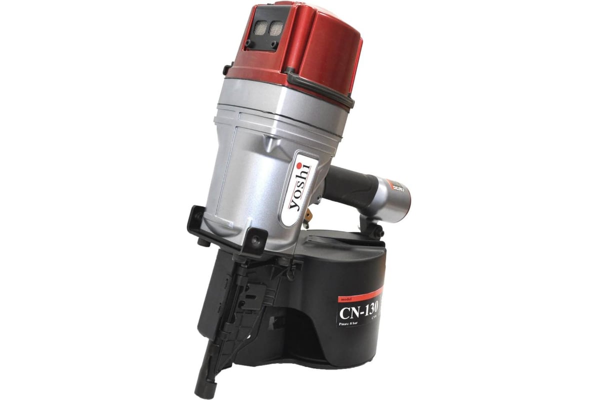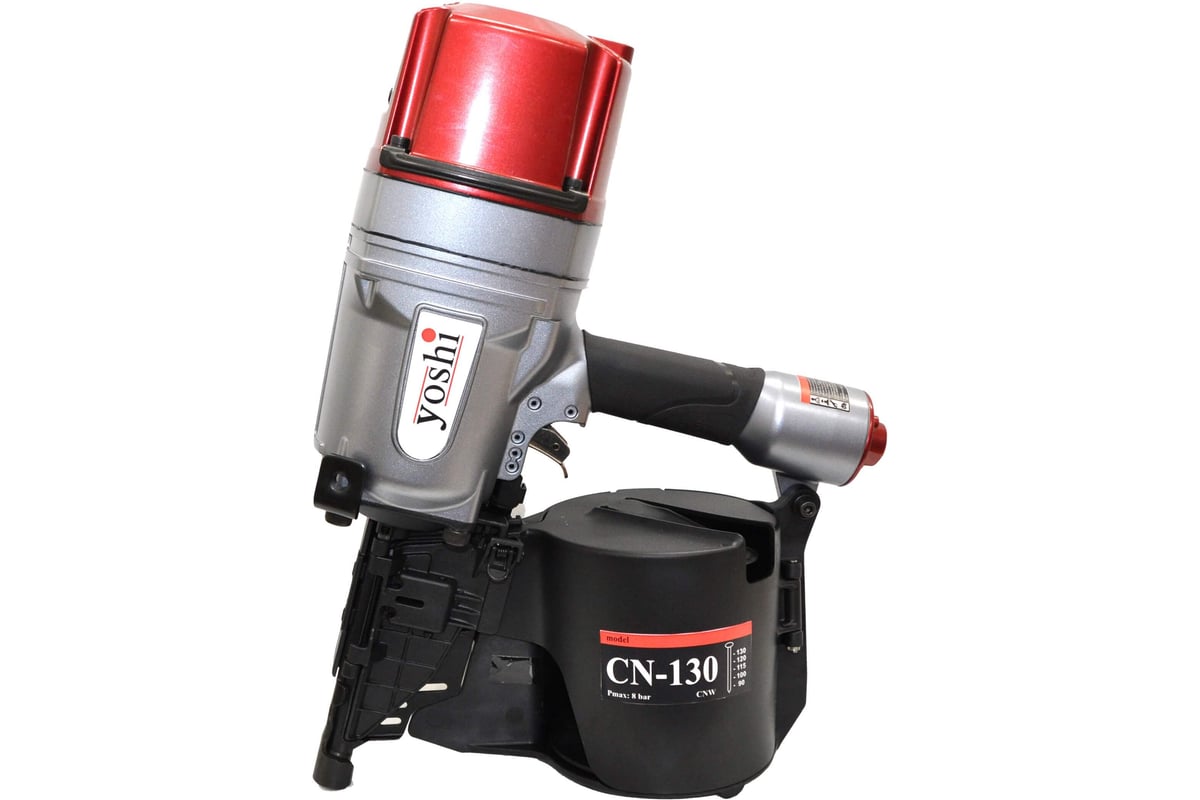 Пневматический гвоздезабивной пистолет Yoshi CN_130 — мощный инструмент для производства усиленных паллет, деревянных барабанов и каркасного домостроительства. Работает с барабанными гвоздями CNW диаметром 3,3–3,8 мм и длиной 90–130 мм. Поддерживает рабочее давление 5–8 бар, при этом расход воздуха составляет всего 3,2 Нл/выстрел. Вместительный магазин вмещает до 300 гвоздей, обеспечивая продолжительную работу без частой перезарядки. При весе 6 кг инструмент остаётся сбалансированным и удобным в эксплуатации.