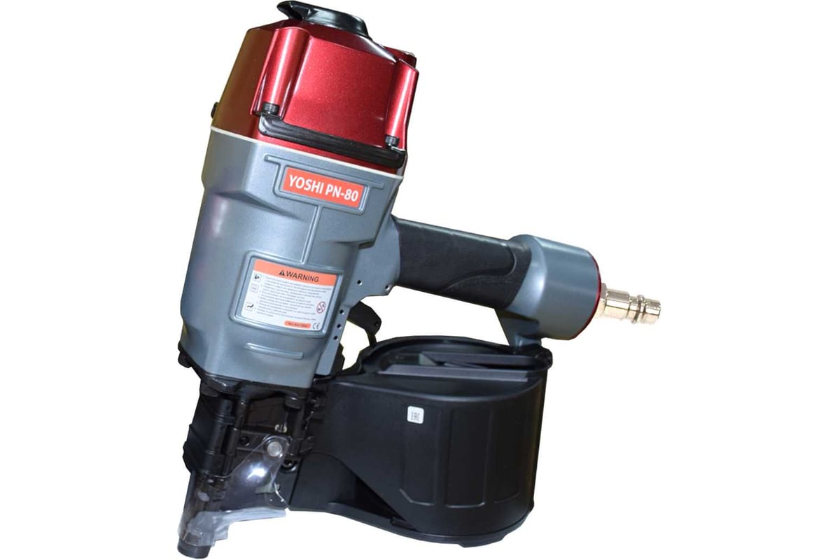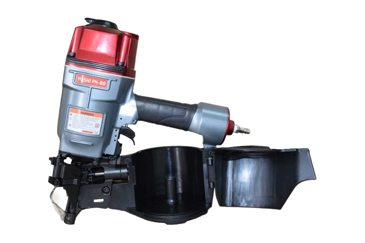 Yoshi PN-80 — это профессиональный пневматический гвоздезабивной пистолет, созданный для производств с высокой интенсивностью. Инструмент рассчитан на работу с барабанными гвоздями CNW диаметром от 2,5 до 3,3 мм, длиной от 50 до 83 мм, что позволяет надёжно фиксировать даже массивные детали.