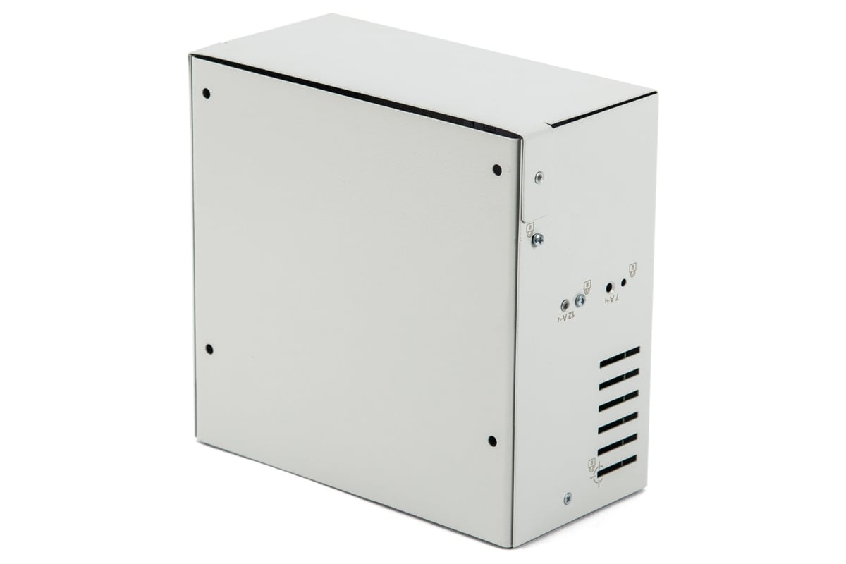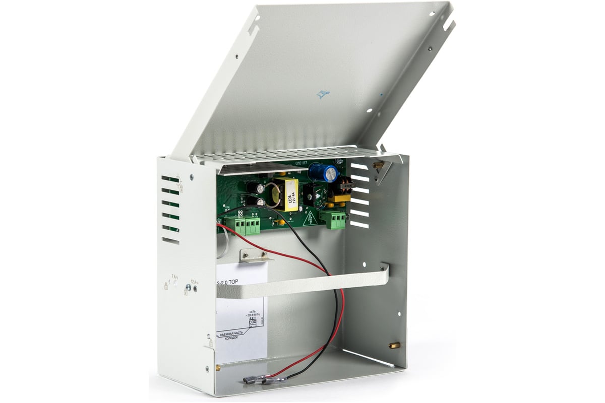 Корпус с продуманной системой крепежа позволяет повесить ИБП на любой горизонтальной поверхности. Уникальный механизм подвеса позволяет легко и быстро смонтировать источник на потолке и обеспечивает в дальнейшем удобное обслуживание, замену АКБ и демонтаж. Специальные дополнительные фиксаторы в крышке и основании корпуса делают монтаж ещё более удобным и безопасным. Контрольные винты надёжно фиксируют откидную крышку в закрытом положении и защищают от случайного открытия. Специальная скоба для удержания АКБ защищает от опрокидывания аккумулятора при открывании крышки и позволяет прочно удерживать АКБ 7–12 Ач. Система вентиляции и элементная база подобраны таким образом, чтобы источник не перегревался даже при использовании за подвесным потолком.