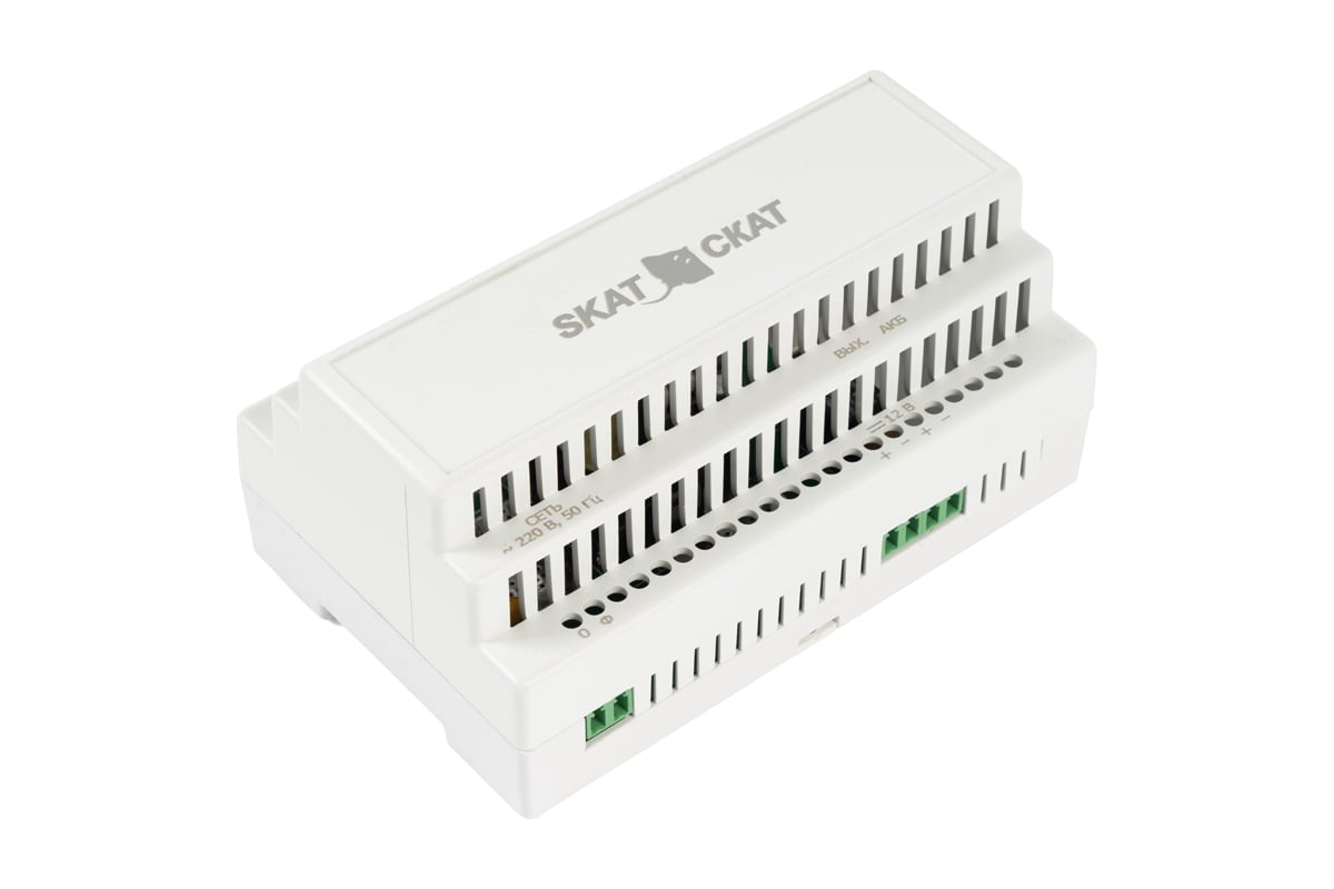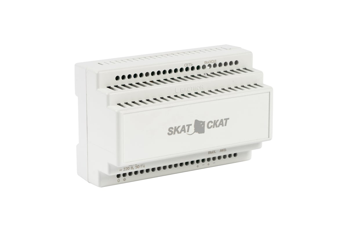 Источник питания SKAT-12-4.0 DIN 12В 4А АКБ внешняя 1х17-26Ач ток заряда 4,0–Iнагр. 597 предназначен для электропитания радиоэлектронной аппаратуры номинальным напряжением 12 В и обеспечивает (при наличии внешней АКБ) бесперебойное питание систем охранно-пожарной сигнализации, устройств автоматики, домофонов, электрических кодовых замков, телекоммуникационного оборудования и др.