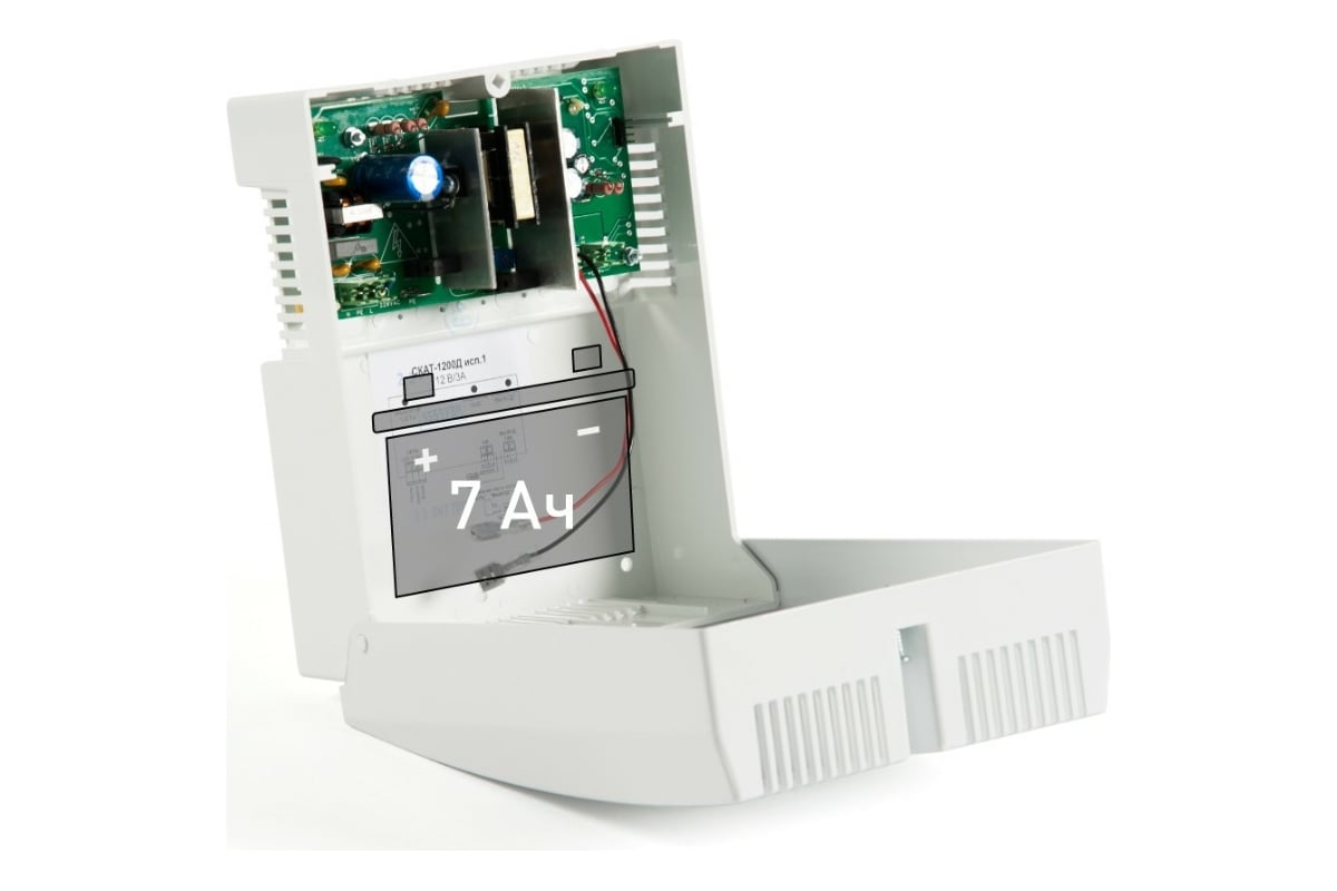 Источник питания СКАТ-1200Д исполнение 1 ИБП-12/3-7 12В 3А корпус под АКБ 1х7Ач СС Т 810 соответствует ФЗ 123 и ГОСТ Р 53325-2012. Защита выхода от перегрузки и короткого замыкания. Защита АКБ от глубокого разряда, короткого замыкания и переполюсовки Контроль наличия АКБ. Холодный пуск.