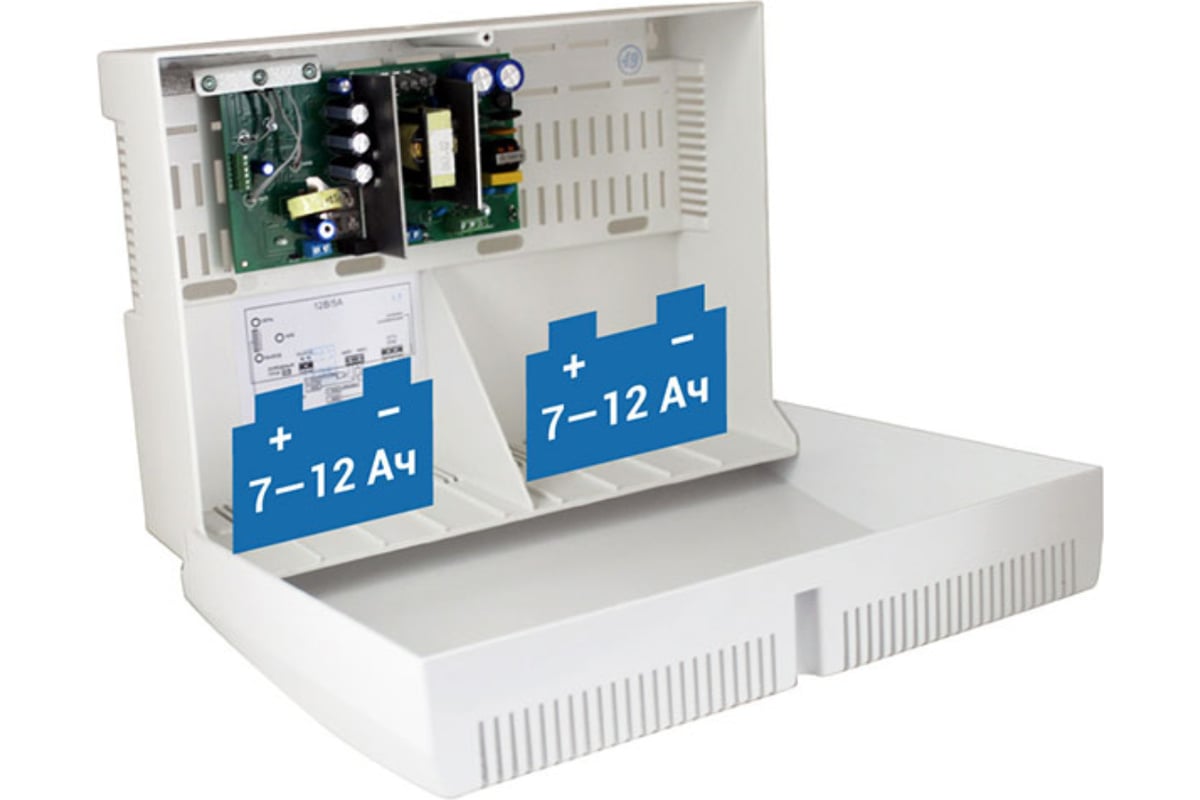 Источник питания СКАТ-1200И7 ИБП-12/5-2x12-П 12В 5А корпус под АКБ 2х12Ач холодный пуск 60 соответствует ФЗ 123 и ГОСТ Р 53325-2012. Защита выхода от перегрузки и короткого замыкания. Защита АКБ от глубокого разряда, короткого замыкания и переполюсовки. Контроль наличия АКБ.