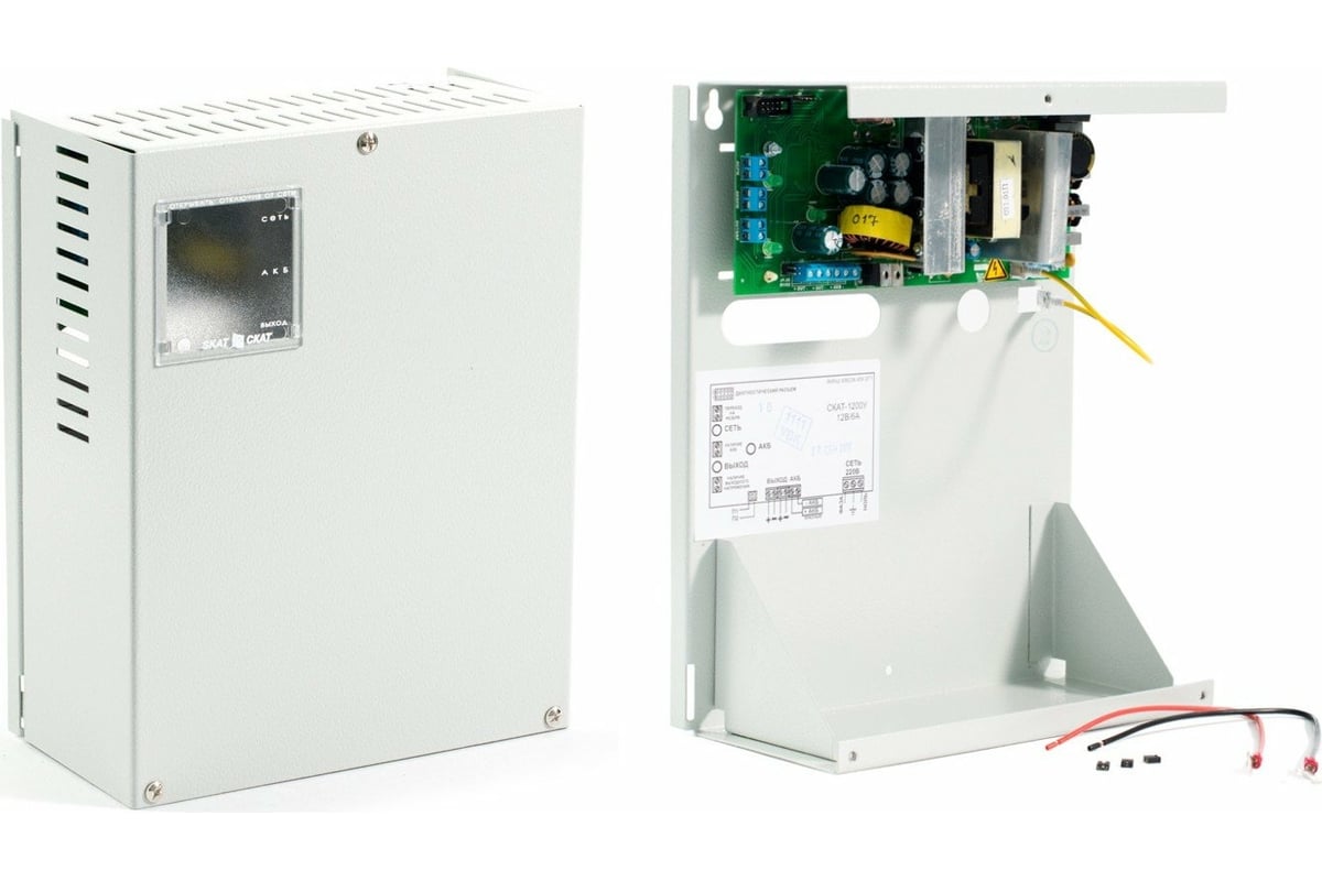Источник питания СКАТ-1200У ИБП-12/6,5-17 12В 6А корпус под АКБ 1х17Ач 95 соответствует ФЗ 123 и ГОСТ Р 53325-2012. Имеет защиту выхода от перегрузки и короткого замыкания. Защита АКБ от глубокого разряда, короткого замыкания и переполюсовки. Контроль наличия АКБ. Холодный пуск.