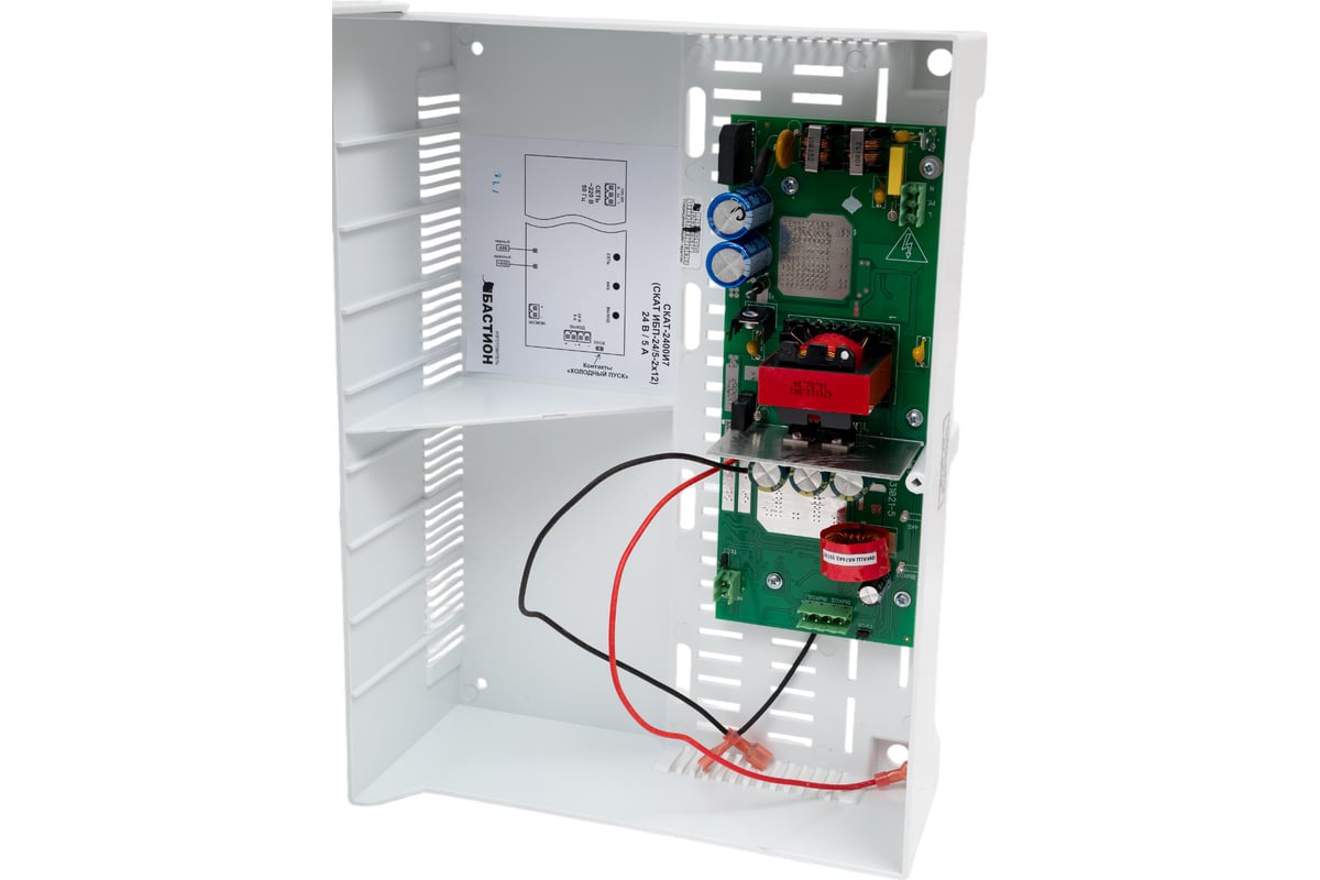 Источник питания СКАТ СКАТ-2400И7 ИБП-24/4,5-2x12 24В 4,5А корпус под АКБ 2х12Ач холодный пуск СС 65 соответствуют требованиям Технического регламента о требованиях пожарной безопасности ГОСТ Р 53325-2012. Имеет защиту выхода от перегрузки и короткого замыкания. Защита АКБ от глубокого разряда, короткого замыкания и переполюсовки. Контроль наличия АКБ. Холодный пуск.