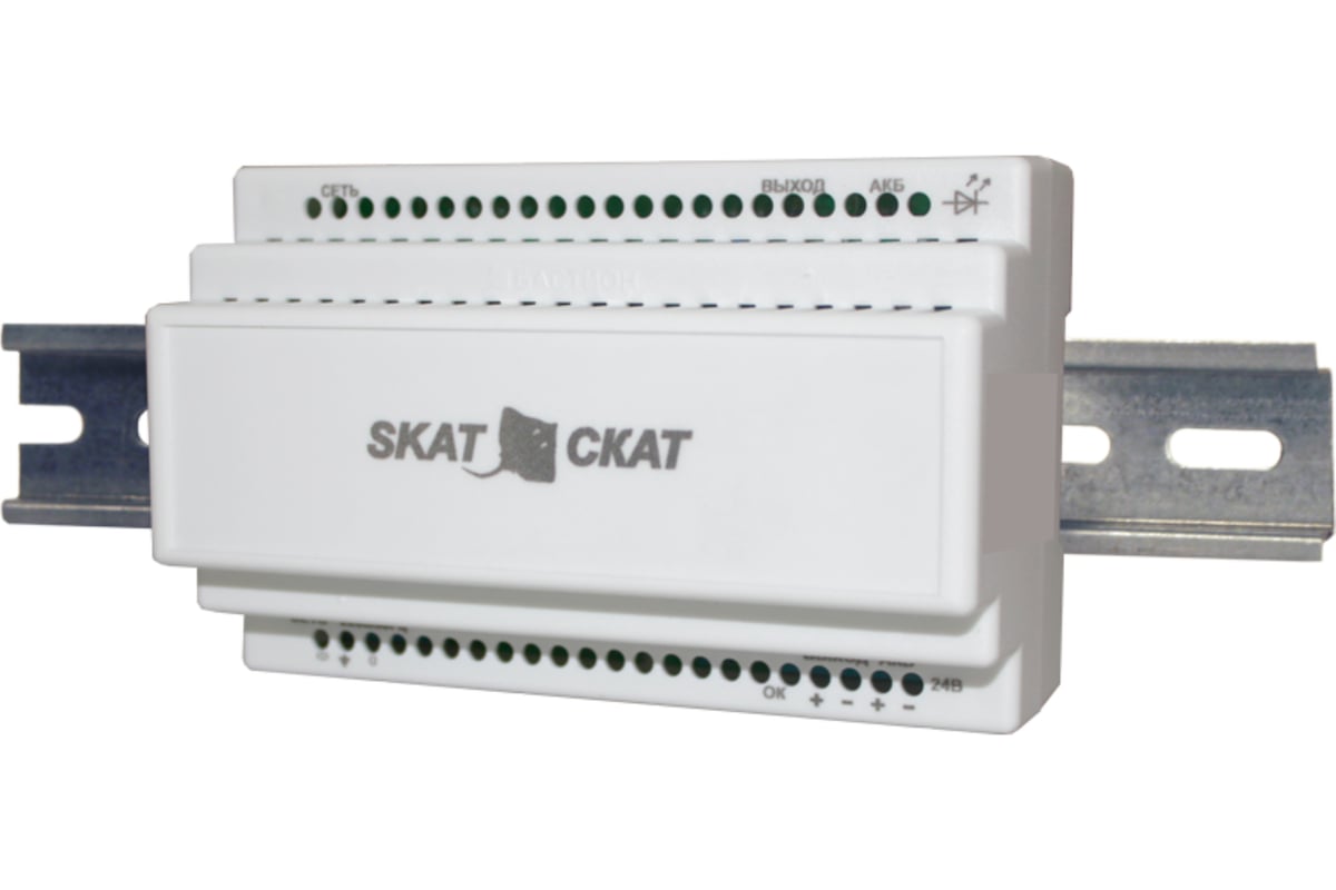 Изделие представляет собой стабилизированный источник питания, который формирует выходное напряжение для питания нагрузки и осуществляет заряд внешней АКБ (при наличии). При отключении напряжения питающей сети происходит автоматический переход на резервное питание от АКБ (при наличии). При этом светодиодный индикатор «ВЫХОД» светится красным цветом, указывая на наличие выходного напряжения. Конструктивно изделие представляет собой печатную плату, расположенную в пластиковом корпусе, предназначенном для установки на 35 мм DIN-рейку.
