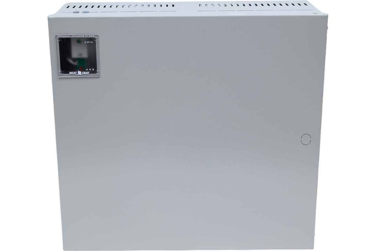 Источник питания SKAT-V.24DC-18 исполнение 5000 СКАТ ИБП-24/18-2x40 24В, 18А, 5 "ОК", корпус 2 АКБ 40 857 с регулируемым током заряда АКБ. Термокомпенсация тока заряда АКБ. Корпус под 2 АКБ 40 Ач. 5 информационных выходов о состоянии источника. Электронная зашита от перегрева, короткого замыкания выхода и АКБ. Кнопка отключения нагрузки.