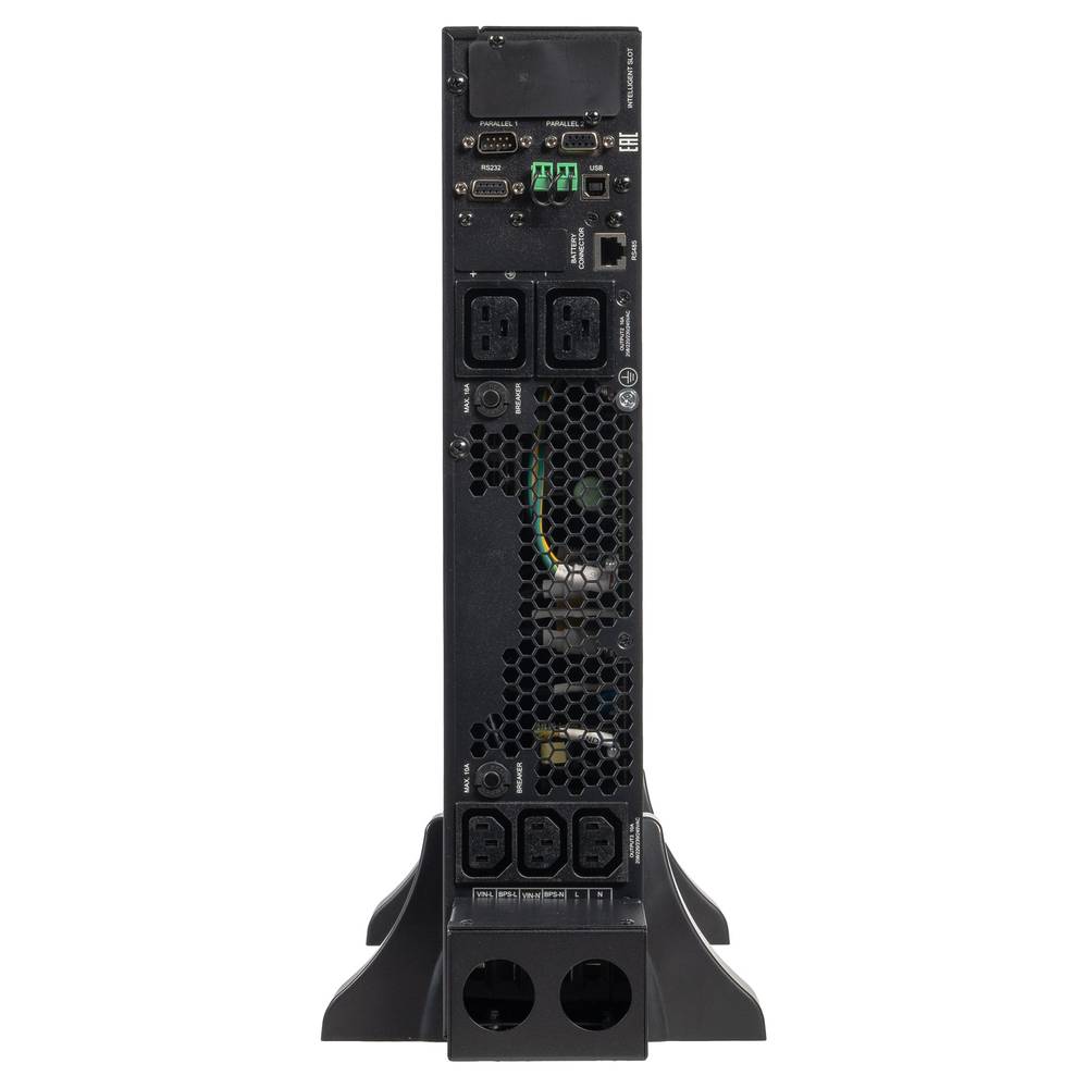 - Широкие коммуникационные возможности. Двунаправленный коммуникационный интерфейс RS-232, порт связи USB; интеллектуальный порт для установки дополнительных коммуникационных модулей (платы релейного интерфейса, SNMP-адаптера и др.); разъем для подключения устройства дистанционного аварийного отключения питания (EPO).