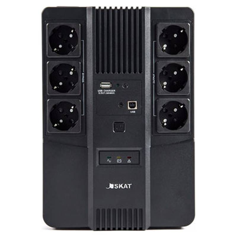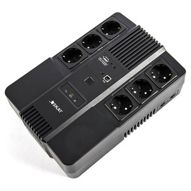 SKAT-UPS 800 AI — надёжный российский источник бесперебойного питания 220 В, 800 ВА (480 Вт), имеет наиболее востребованные мощностные характеристики и идеально подходит для офисных целей. Встроенный АКБ 9 Ач, встроенная стабилизация, заряд и защита АКБ, защита нагрузки.