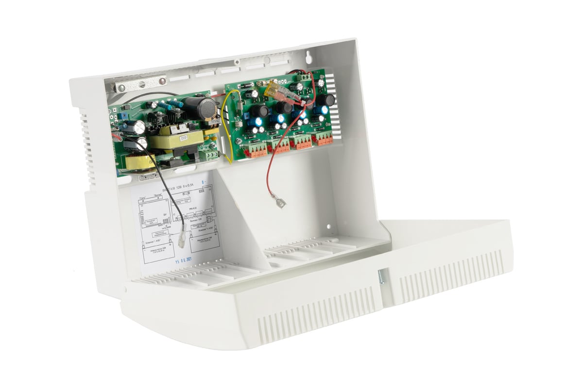 Источник питания SKAT-V.8 8 выходов 12-15В, 0,5А канал, корпус 2 АКБ 12Ач 147 имеет 8 выходов по 0,5 А или 4 выхода по 1 А. Корпус под 2 АКБ 12 Ач. Суммарный ток по выходам - 3 А. Независимая регулировка выходного напряжения по каналам, фильтрация помех по каждому каналу, защита от КЗ и перегрузки по каждому каналу.