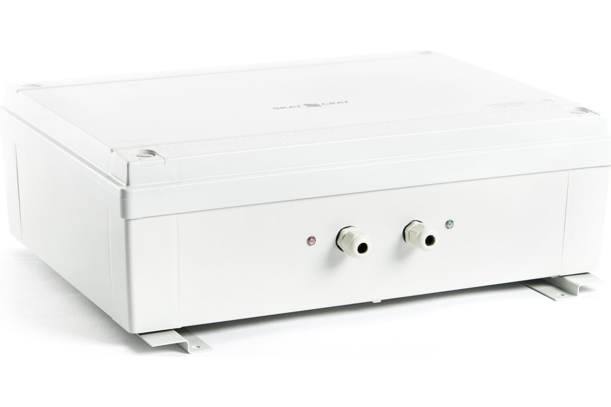 Источник питания SKAT-V.24/220AC 24VAC, 220VAC, Р=150ВА, 2 термостата 12Ач 154 имеет 2 выхода переменного напряжения 220 В и 24 В суммарно 150 ВА. Корпус под 2 термостата АКБ 12 Ач. Дистанционное сообщение о переходе на резерв и о разряде АКБ. Защита АКБ и защита нагрузки.