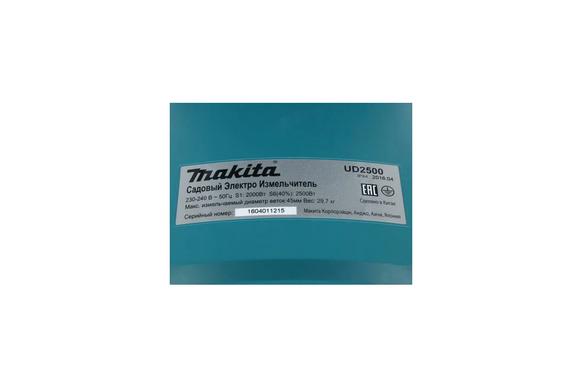 Измельчитель садовый Makita UD2500 применяется для измельчения веток диаметром до 45 мм. Модель оснащена мощным асинхронным двигателем. Измельчение веток происходит при помощи фрезы. В нижнюю часть измельчителя устанавливается контейнер объемом 67 литров, он же является концевиком, который предотвращает случайное включение инструмента. Если фреза попала на сучок и ветка не измельчилась, то электроника в автоматическом режиме включит реверc и повторно начнет измельчать ветку. При закусывании фрезы, можно в ручном режиме включить реверс. Широкая основа и высокая масса обеспечивают устойчивость инструмента на любой поверхности. Опорные колеса обеспечивают комфортную транспортировку.
