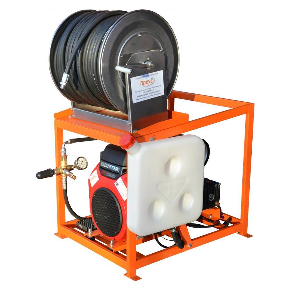 Каналопромывочная установка ПРЕУС Б1550П Z* применяется для очистки различных поверхностей и канализационных труб любых диаметров. Оснащена бензиновым двигателем Zongshen с электростартером, мощностью 27 л.с., емкость топливного бака 12 л. Износостойкий трубоочистной шланг высокого давления длиной 80 м и диаметром 12 мм. Производительность – 50 л/мин. Плавная регулировка давления с системой By-Pass до 150 бар.