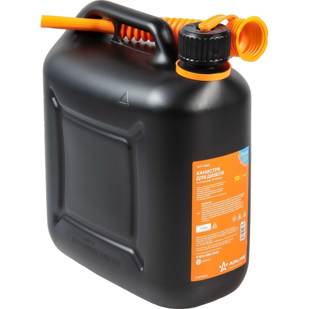 Канистра пластиковая 10 л Airline ACF-10SD обеспечивает безопасную транспортировку и надежное хранение воспламеняющихся жидкостей, таких как дизель, бензин и масло. Изготовлена из первичного пластика с антистатическими свойствами - обязательное требование пожарной безопасности при использовании канистр для ГСМ. Идущий в комплекте гофрированный носик оснащен воздушным каналом для быстрой и удобной заправки автомобиля. Так же канистра снабжена удобной крышкой с защитой от детей.