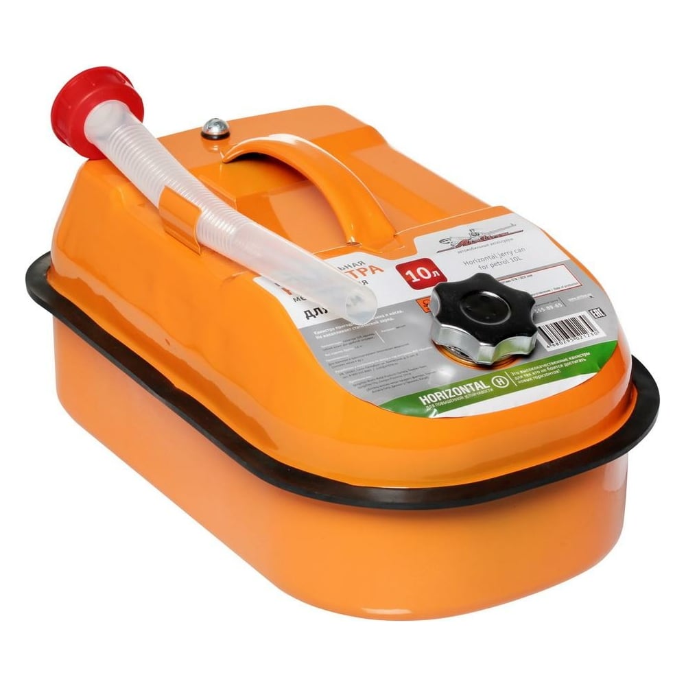 Металлическая горизонтальная канистра 10 л Airline ACF-10H служит для хранения горючих жидкостей в безопасном месте, например в багажном отделении автомобиля. Ручка сверху корпуса и небольшой вес модели способствуют удобству транспортировки. Шланг входит в комплект поставки, что дает возможность легко и аккуратно залить топливо в горловину бака любой конфигурации.