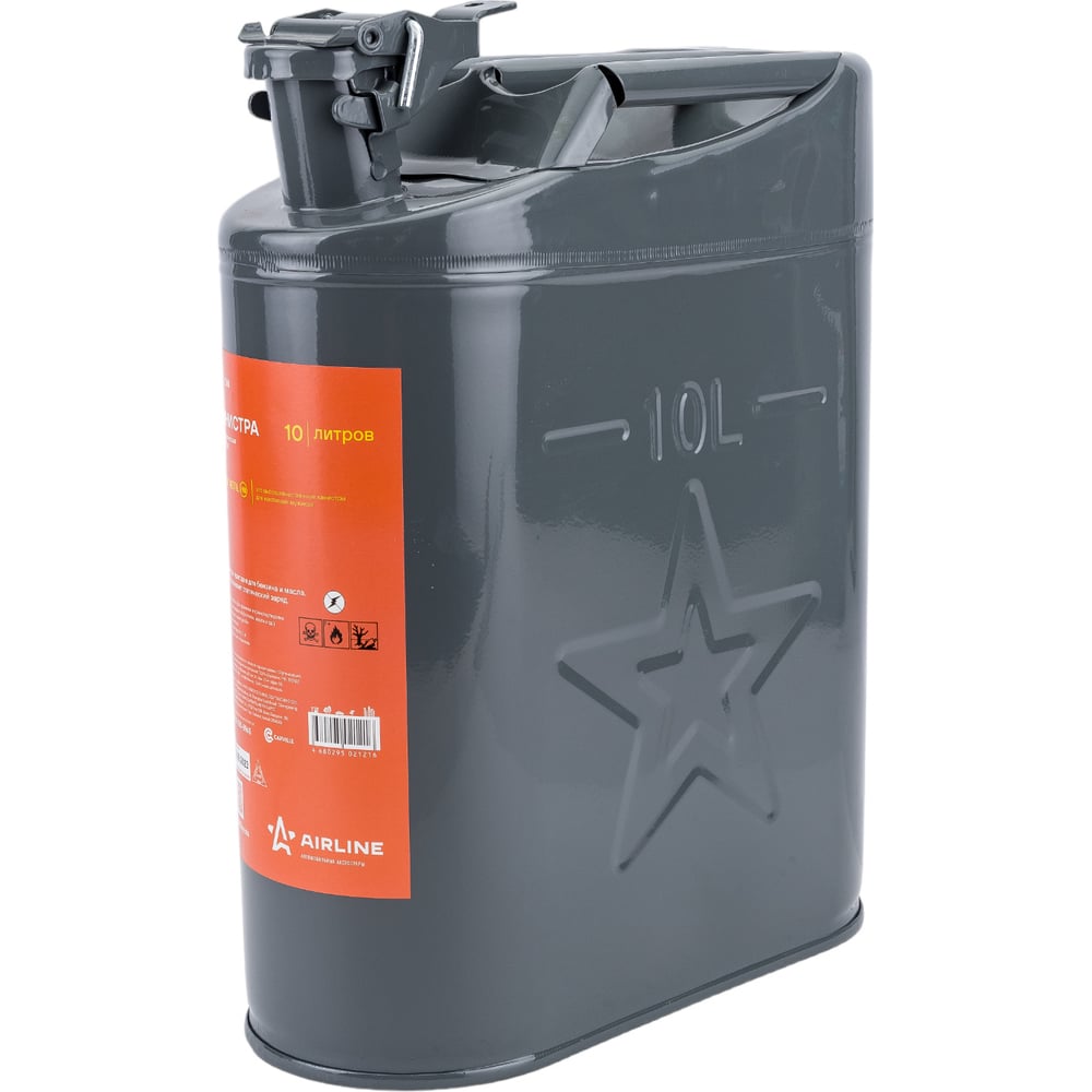 Металлическая канистра 10 л Airline ACF-10M предназначается для хранения горючих жидкостей в безопасном месте, например в багажном отделении автомобиля. Благодаря откидной крышке с фиксатором вероятность протекания топлива исключается. Специальное покрытие защищает внешнюю поверхность корпуса от влияния коррозии и образования царапин в течение всего срока службы.