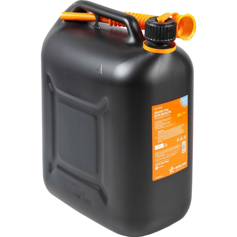 Канистра пластиковая 20 л Airline ACF-20SD обеспечивает безопасную транспортировку и надежное хранение воспламеняющихся жидкостей, таких как дизель, бензин и масло. Изготовлена из первичного пластика с антистатическими свойствами - обязательное требование пожарной безопасности при использовании канистр для ГСМ. Идущий в комплекте гофрированный носик оснащен воздушным каналом для быстрой и удобной заправки автомобиля. Так же канистра снабжена удобной крышкой с защитой от детей.