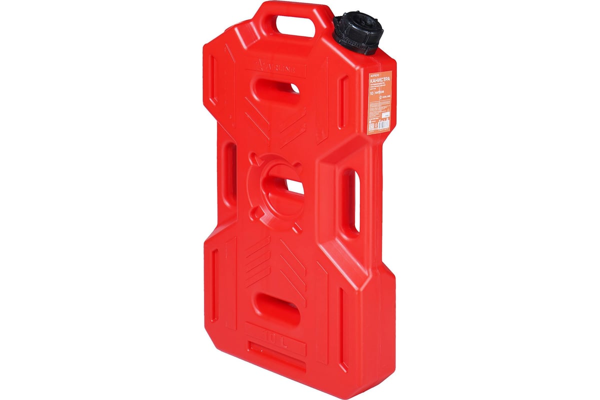 изготовлена из высококачественного полимерного материала, стойкого к химическим воздействиям. Изделие имеет специальную форму, обеспечивающую повышенную ударопрочность и устойчивость к деформации. Особая эргономичная форма корпуса позволяет надёжно закрепить канистру в удобном месте на внедорожнике, квадроцикле или снегоходе, а предусмотренная рукоятка облегчает переноску и манипуляции с канистрой. Данная модель разработана с учётом эксплуатации в сложных дорожных условиях, выдерживает значительные нагрузки и сохраняет свои свойства при резких перепадах температур. Канистра оптимально подходит для длительных поездок и экспедиций, обеспечивая безопасное хранение и транспортировку топлива либо иных технических жидкостей.