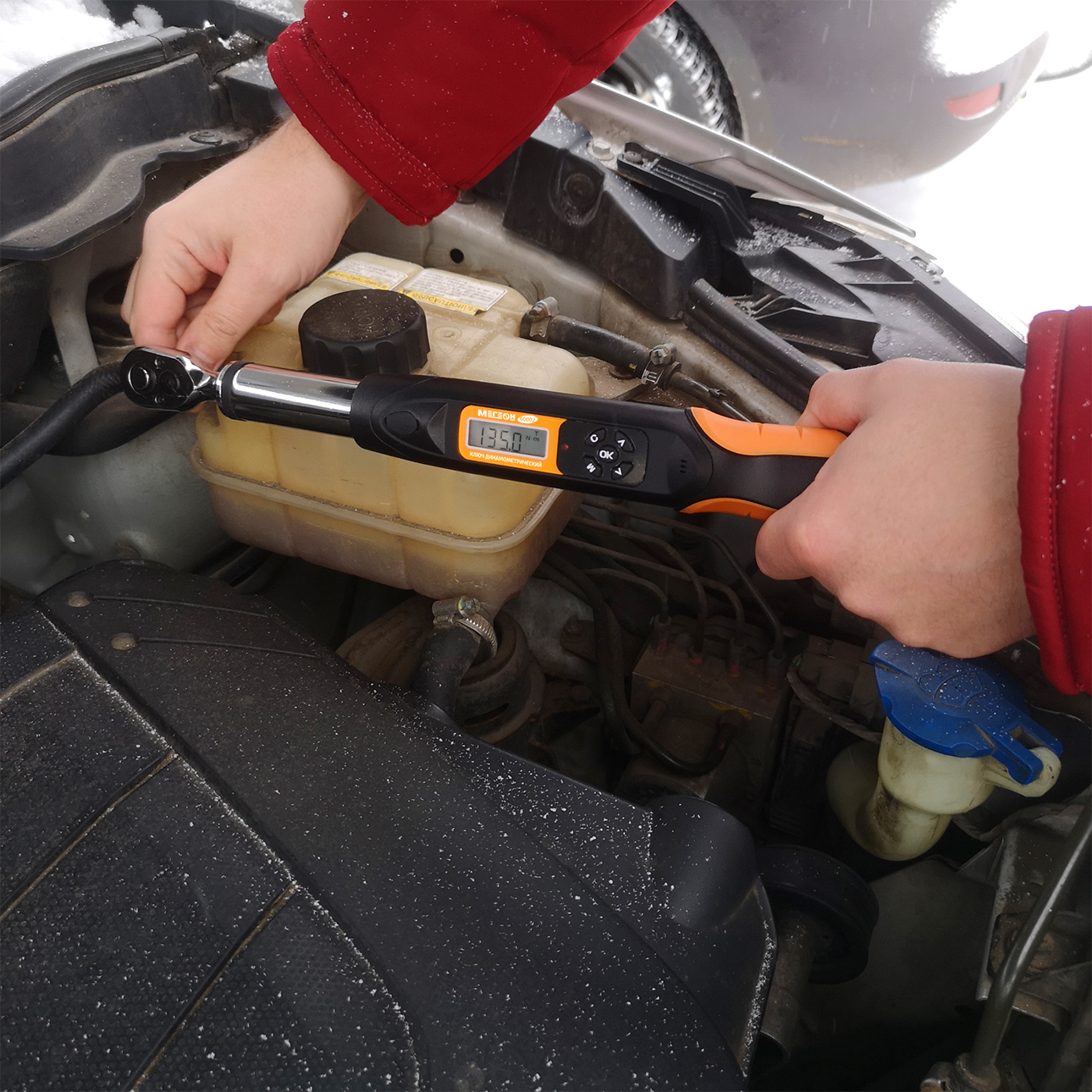 МЕГЕОН 60002 - это цифровой динамометрический ключ, предназначенный для контроля затяжки элементов крепежа в диапазоне 6,7 ... 135 Нм и разрешением 0,1. Имеет простой интерфейс программного обеспечения, хромированное покрытие металлических частей и прочный механизм трещотки с возможностью работы в обе стороны. Рукоятка анатомической формы выполнена из качественных полимерных материалов и дополнительно получила вставки противоскольжения, что в свою очередь, благоприятно влияет на удобство эксплуатации. Прибор оборудован звуковой и световой сигнализациями, памятью на 100 измерений, а также функцией автоматического выключения. Инструмент высоко оценят профессионалы и любители. Он станет прекрасным помощником в бытовом применении при ремонте автомобиля, мототехники или велосипеда, а также удовлетворит требования самых искушённых специалистов.