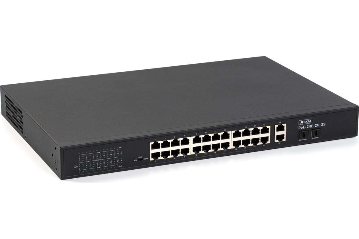 SKAT PoE-24E-2G-2S представляет собой специализированный неуправляемый PoE коммутатор для использования в системах видеонаблюдения и безопасности. Характеризуется высокой надежностью работы благодаря защите от электростатических разрядов и перепадов напряжения, позволяет организовать качественную передачу информации в сети Ethernet.