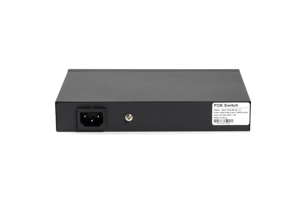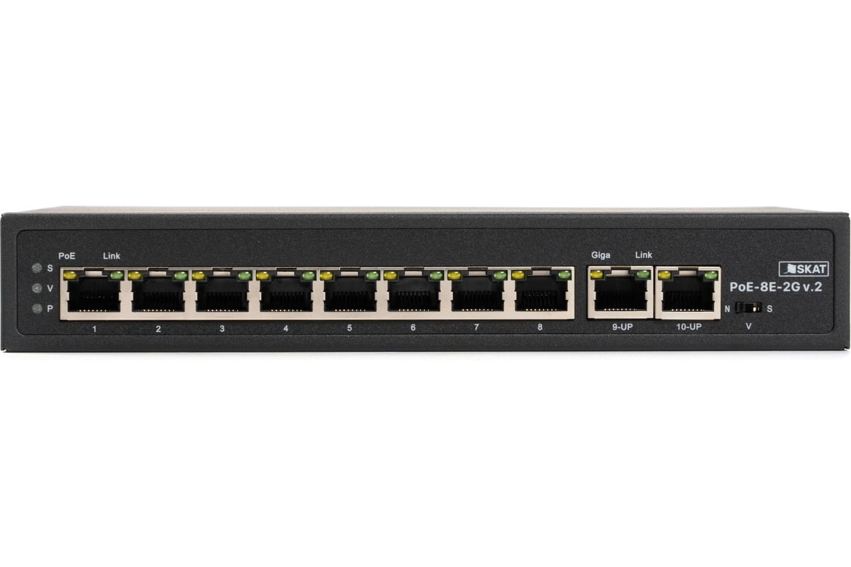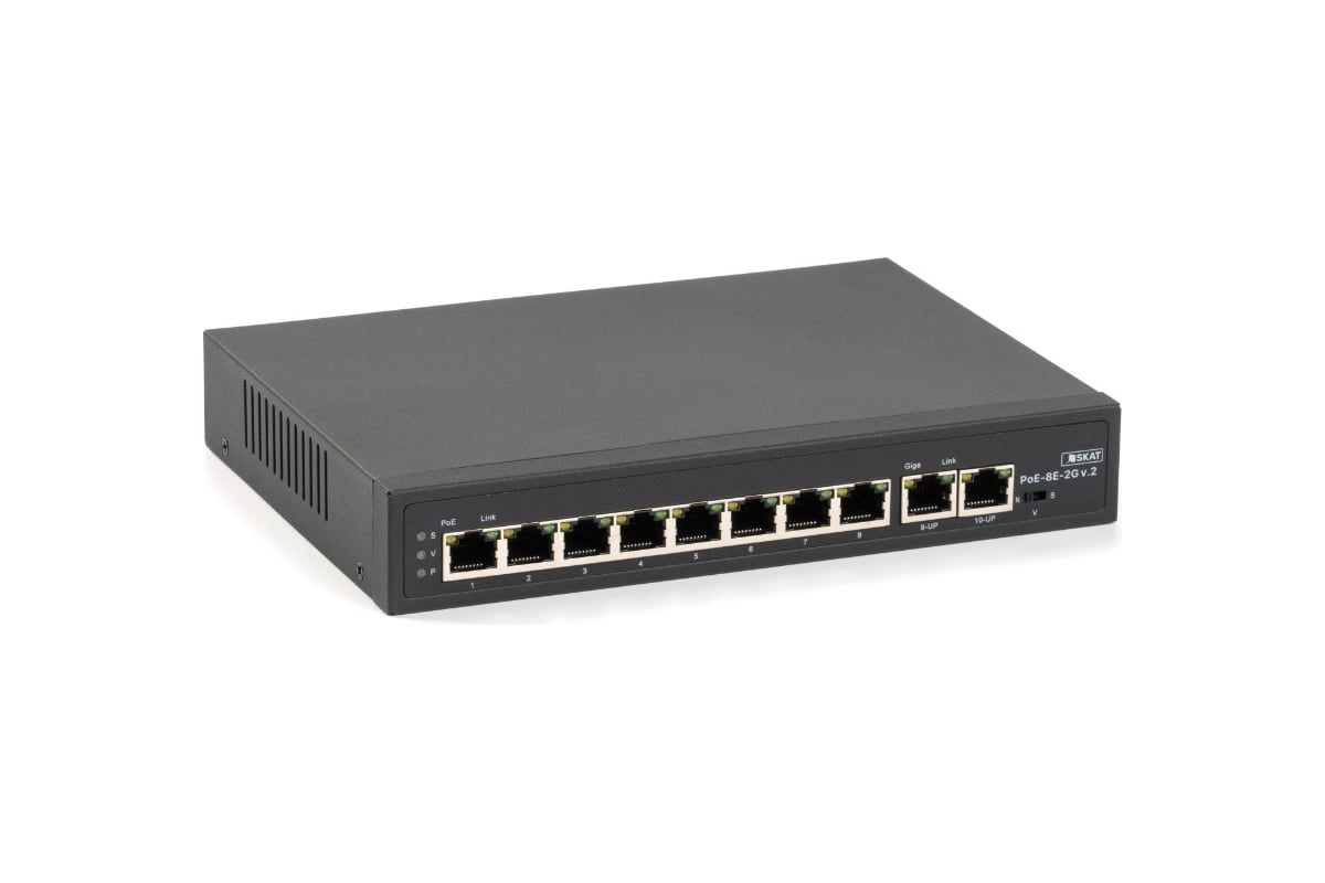 SKAT PoE-8E-2G v.2 представляет собой специализированный неуправляемый PoE коммутатор для использования в системах видеонаблюдения и безопасности. Характеризуется высокой надежностью работы благодаря защите от электростатических разрядов и перепадов напряжения, позволяет организовать качественную передачу информации в сети Ethernet.