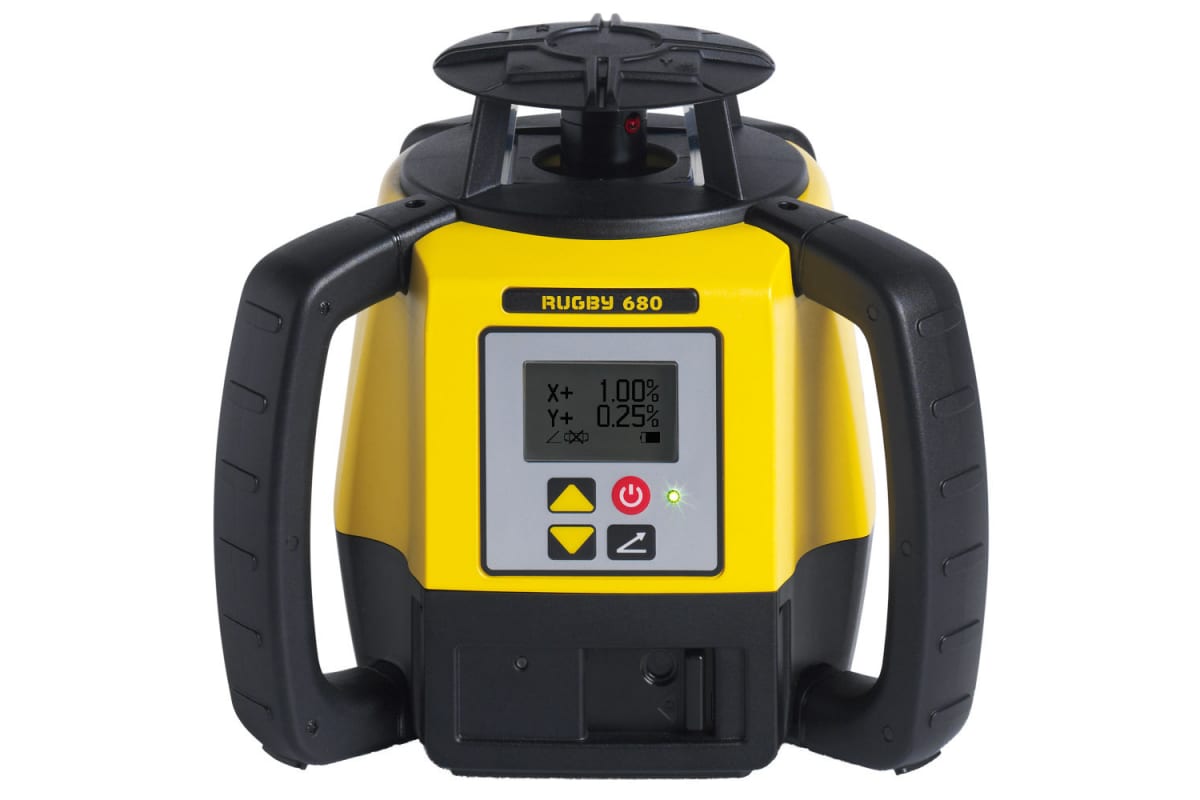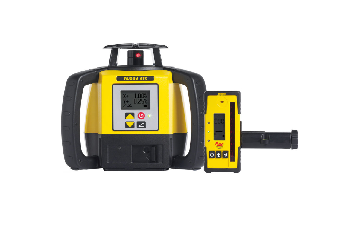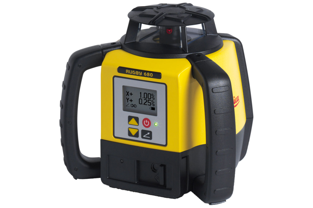 Ротационный нивелир Leica Rugby 680 представляет собой мощный лазерный нивелир с ротационной системой развертки. Плоскость может выставляться и удерживаться как в горизонтальном, так и в наклонном положении в пределах до ±8° по каждой оси. С помощью Leica Rugby 680 выполняются такие повседневные задачи, как: