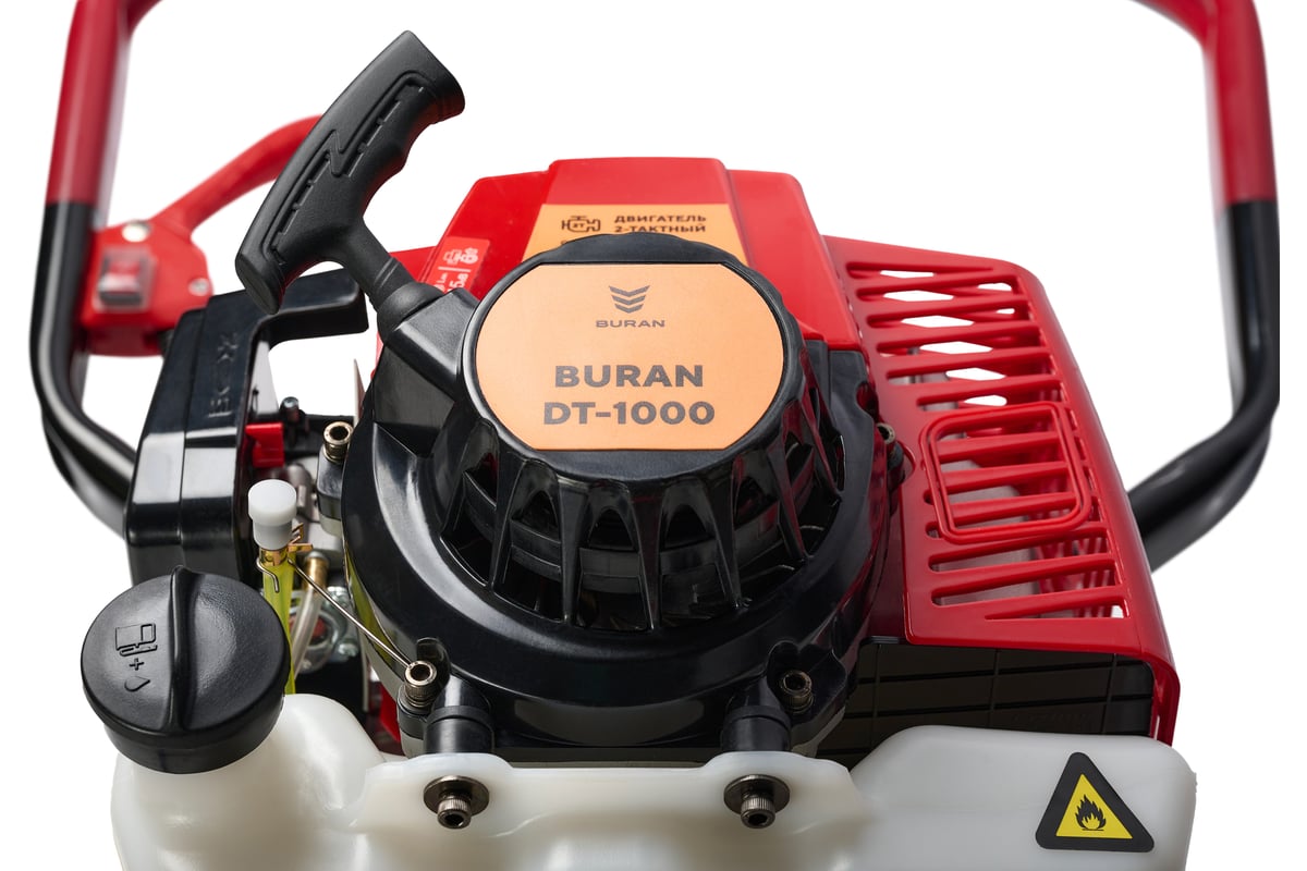 Мотобур модели DT-1000 от производителя профессиональной бензотехники BURAN обладает двухтактным двигателем с увеличенным запасом срока службы. Сбалансированное сочетание надёжности и лёгкости позволяет с комфортом работать одному оператору. Важным преимуществом является мощность бура 3.39 л.с. (2500 Вт) при объёме двигателя 71 см3, это позволяет эффективно использовать шнек диаметром 250мм. DT-1000 становится незаменимым помощником на приусадебном участке и строительной площадке. Перед использованием техники рекомендуется ознакомится с простой инструкцией для лёгкой подготовки и безопасного использования.