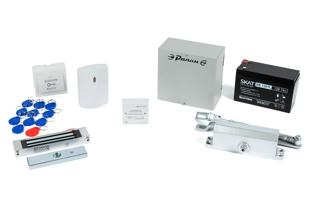 Комплект системы контроля доступа (СКУД) SPRUT – готовое решение, включающее в себя устройства, которые необходимы для организации автономной системы контроля доступа. После монтажа устройств из комплекта Вы получите надежно запирающуюся дверь с доводчиком, быстро открывающуюся при помощи электронных ключей, отсекающую нежелательных посетителей. Комплект рассчитан на установку человеком, не имеющим специальных знаний по монтажу и настройке СКУД, поэтому для облегчения задачи по установке есть подробные инструкции в бумажном формате и на видео.