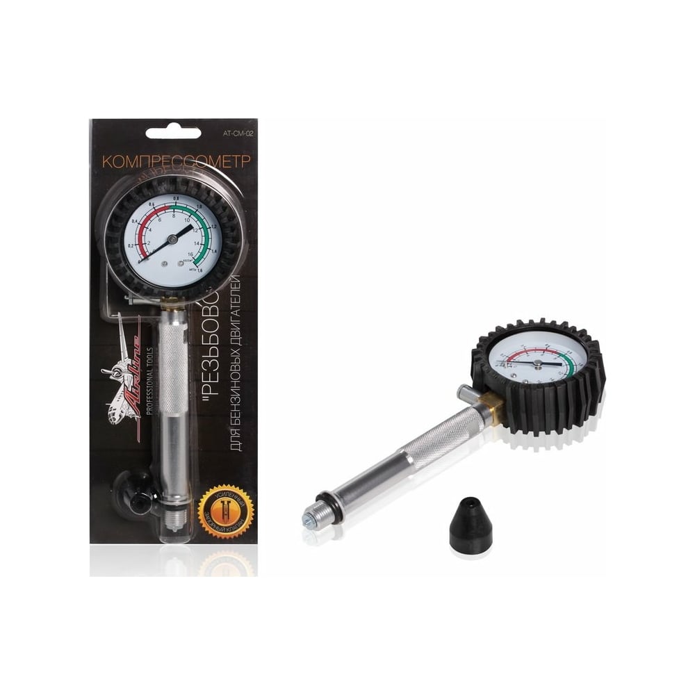 Компрессометр Airline Резьбовой для бензиновых двигателей, манометр в резиновом чехле, блистер AT-CM-02 позволяет быстро оценить состояние бензиновых двигателей. Состоит из манометра, присоединительного шланга с наконечником и запорного клапана. Манометр защищён резиновым чехлом для устойчивости к механическим повреждениям. Запорный клапан имеет усиленную конструкцию.