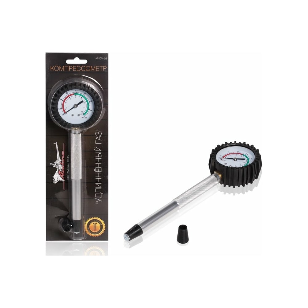 Удлиненный компрессометр Airline ГАЗ 406дв., манометр в резиновом чехле, блистер AT-CM-03 защищен резиновым чехлом, благодаря чему имеет долгий срок службы. Запорный клапан новой усиленной конструкции. Компрессометр состоит из манометра, присоединительного шланга с резьбовым наконечником, запорного клапана.