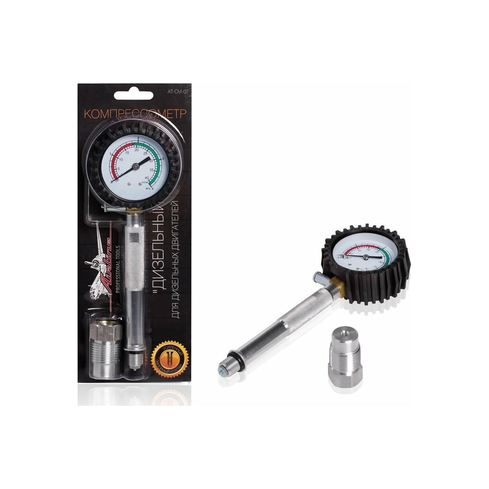 Дизельный компрессометр Airline для топливных cистем Bosch, манометр в резиновом чехле, блистер AT-CM-07 предназначен для быстрой оценки состояния топливных cистем (в частности, Bosch) и дизельных двигателей. Состоит из манометра, присоединительного шланга с наконечником и запорного клапана. Манометр защищён резиновым чехлом для устойчивости к механическим повреждениям. Запорный клапан имеет усиленную конструкцию.