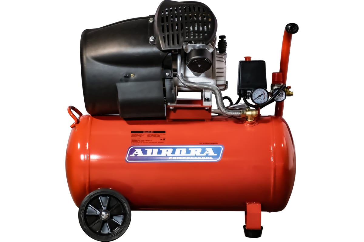 Воздушный компрессор Aurora GALE 45 -это упрощённая версия самого производительного однофазного масляного компрессора с прямым приводом от компании Aurora. Он отличается высокой надёжностью, отличной производительностью и доступной ценой. Компрессор оснащён двумя цилиндрами диаметром 48 мм каждый и V-образной головкой, что обеспечивает его высокую эффективность. Мощный электродвигатель поддерживает стабильные обороты не менее 2850 об/мин даже при максимальном рабочем давлении в 8 бар.