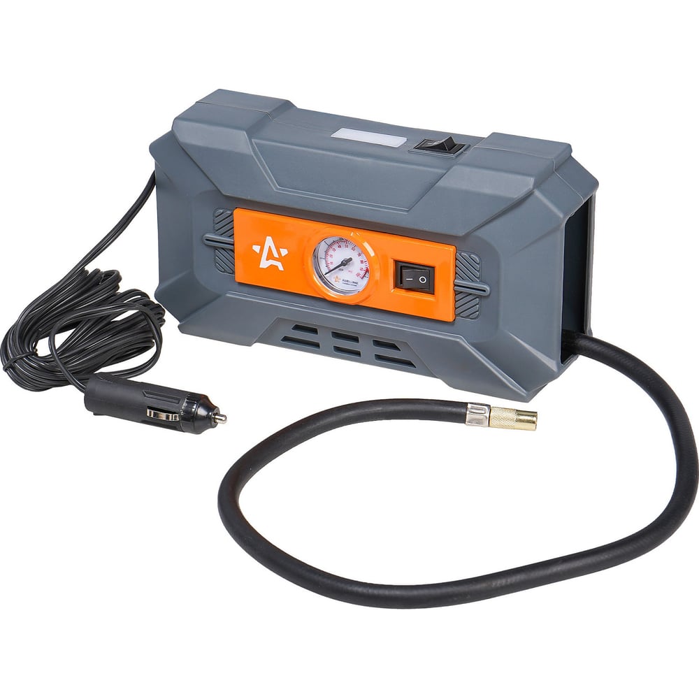 Компрессор MASTER L пластиковый корпус + фонарь, в сумке (22 л/мин., 7 АТМ) AIRLINE CA-030-13L Автомобильный компрессор предназначен для получения сжатого воздуха в дорожных условиях. Компрессор модели MASTER L имеет встроенный фонарик и производительностью до 22 л/мин с максимальным давлением 7 Атм (кг/см2). В данном компрессоре используется конструкция с плавающим шатуном, что увеличивает ресурс работы в 2-3 раза, по сравнению с более мощными "металлическими компрессорами". Время накачивания полностью спущенного колеса R14 до 2 Атм не превысит 4 минут. В комплекте 2 насадки, шланг удобно прячется в корпус изделия. Компрессор можно хранить в фирменной сумке, которая так же идет в комплекте. Артикул: CA-030-13L Состав: Пластик, сталь, резина, текстиль Мощность, Вт: 84 Напряжение: 12 - 13,5 В Производительность: 22 л/мин (1,3 куб.м/час) Максимальное давление: 7 Атм (кг/см2) (7,1 Бар) Максимальный ток: 6 А Время непрерывной работы: до 15 мин Манометр: Встроенный механический Длина кабеля питания: 2,7 м Длина шланга: 0,6 м Время накачивания колеса R14 от 0 до 2 Атм: 5 мин
