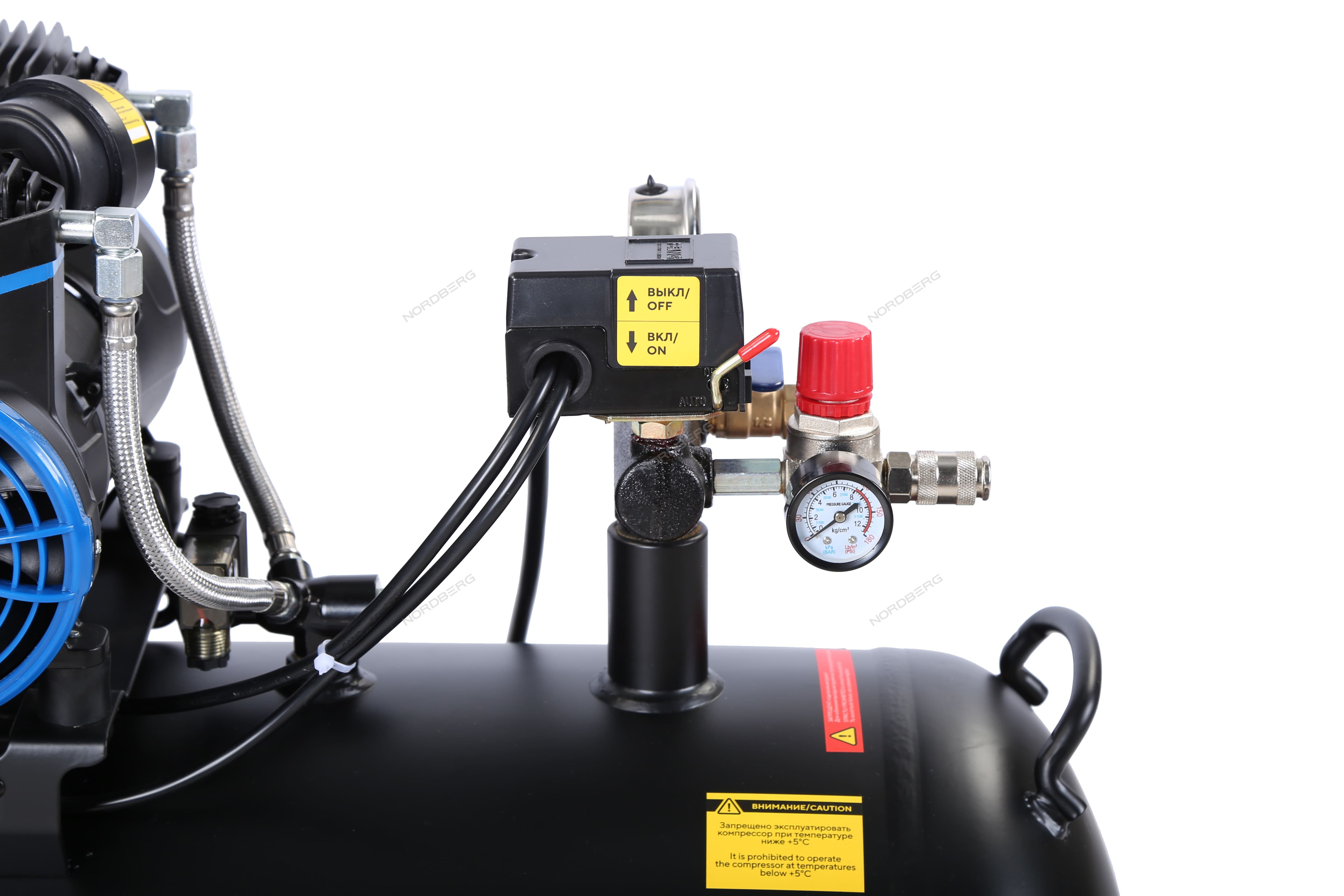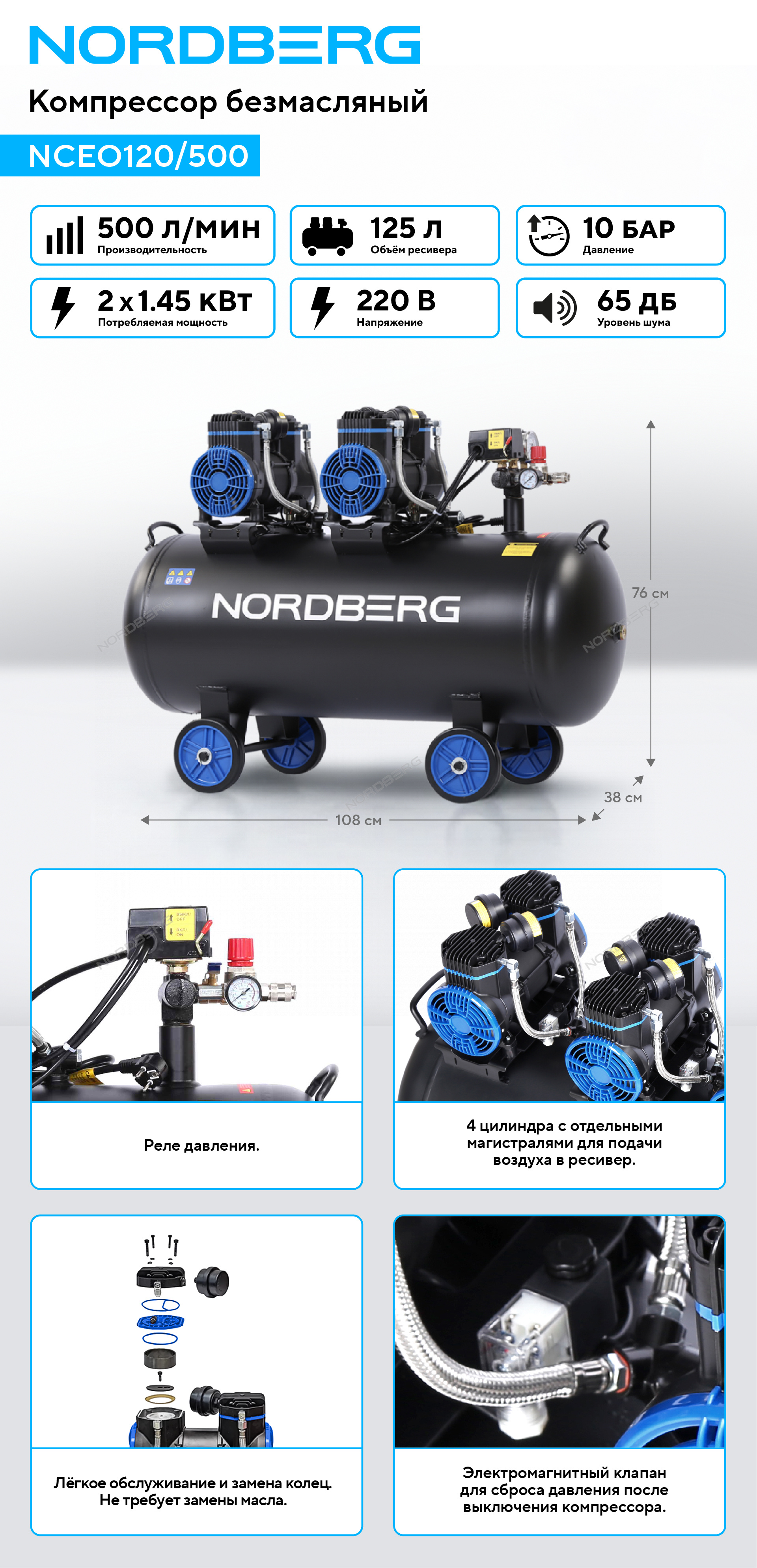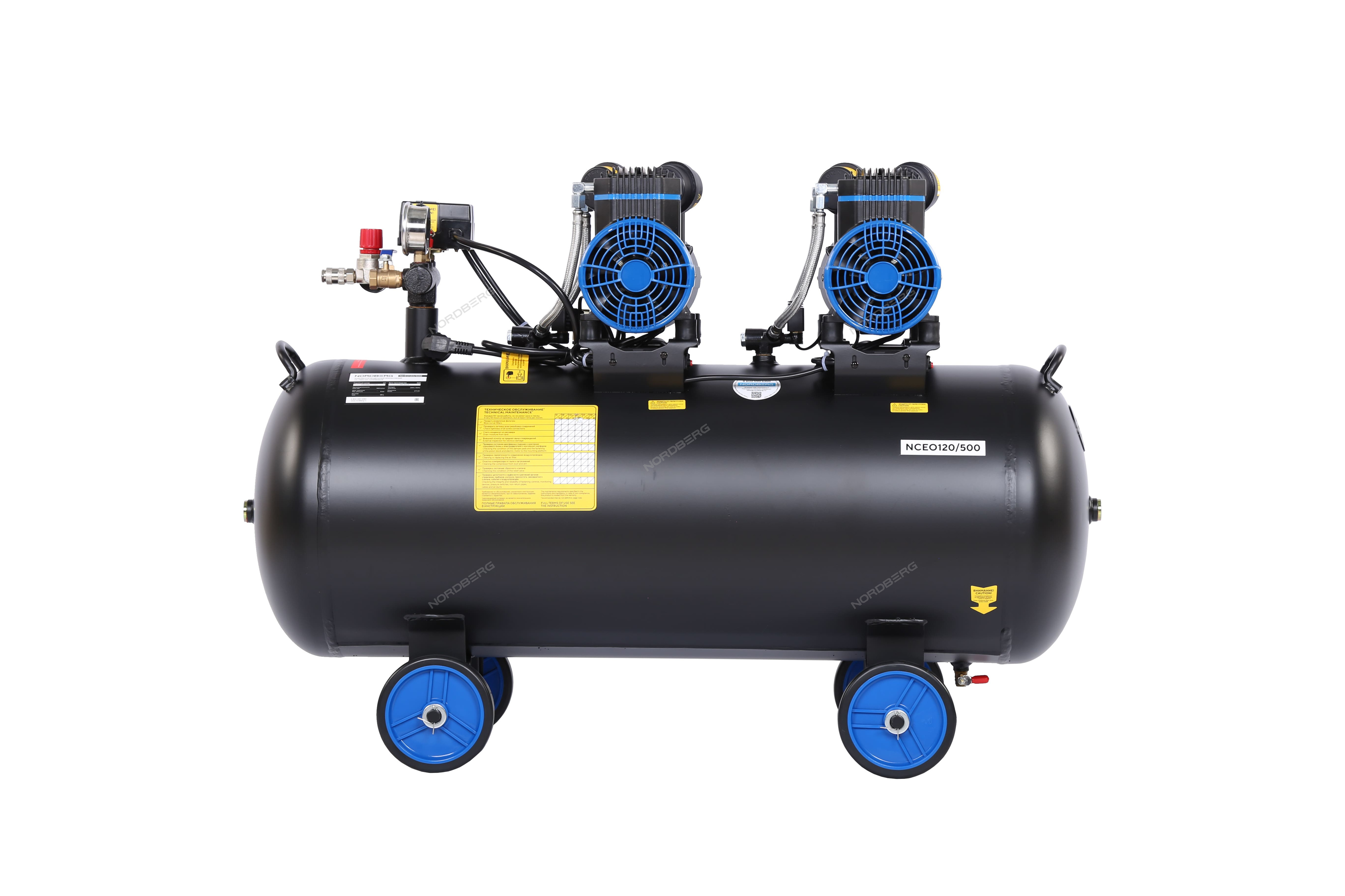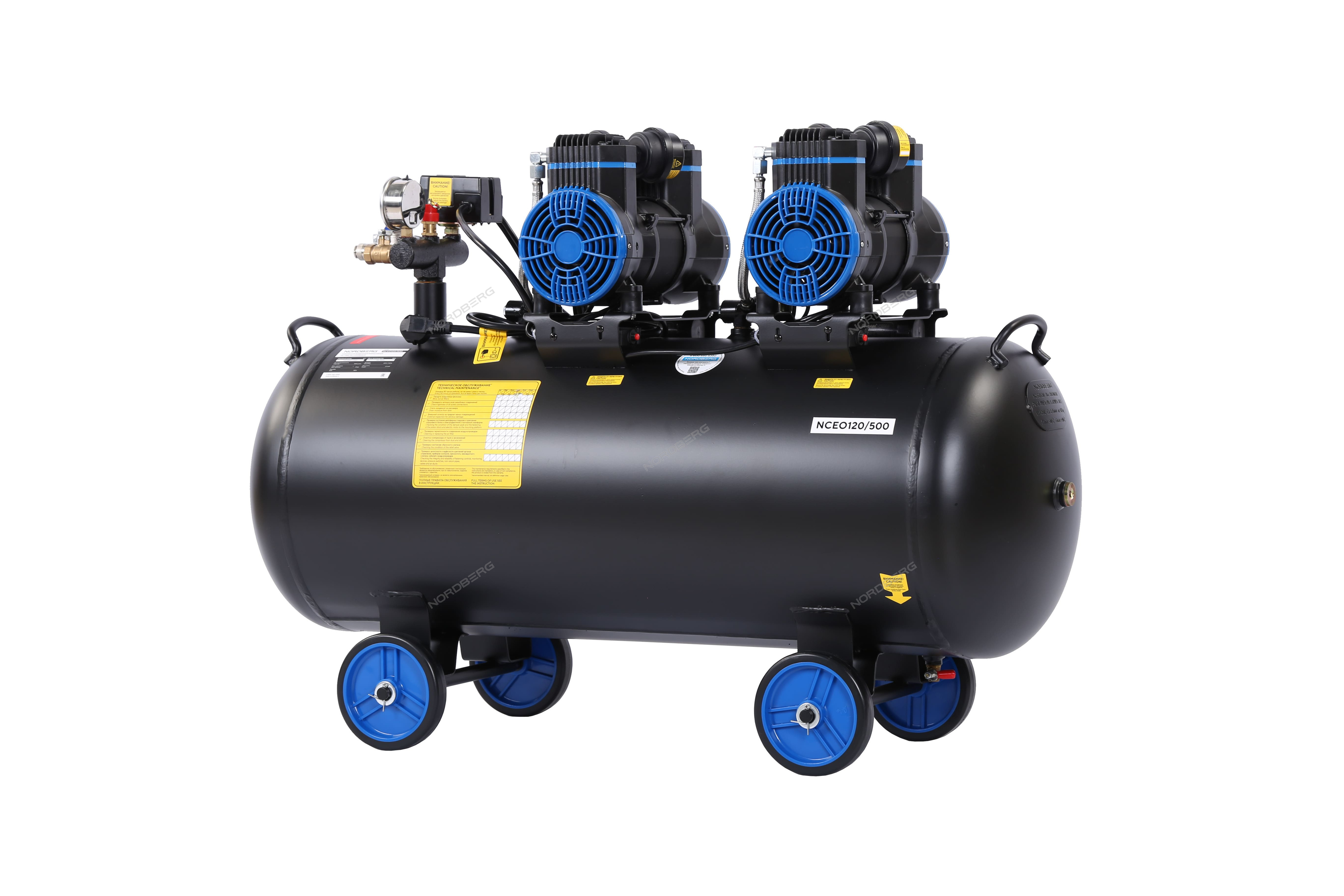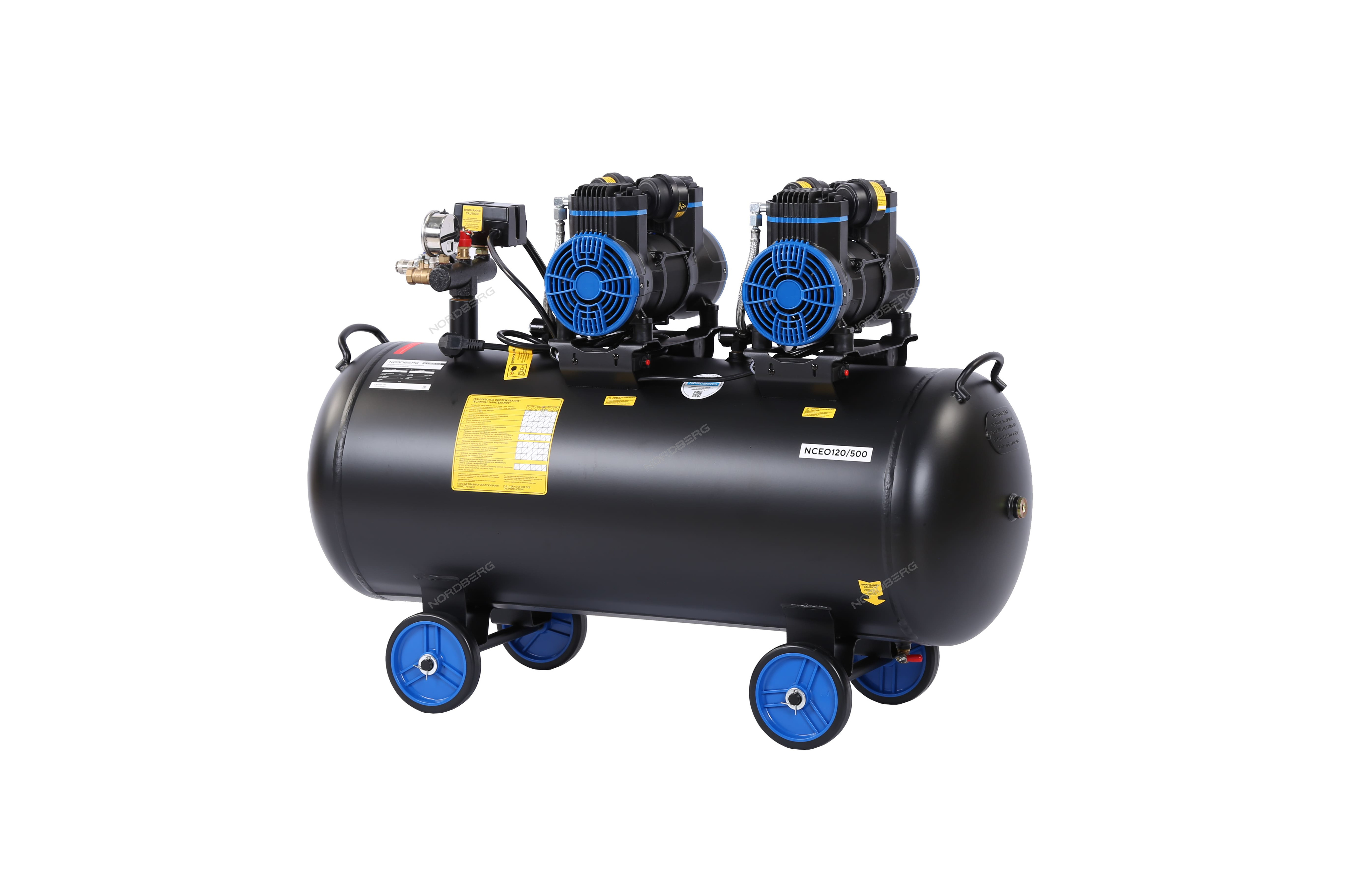 NORDBERG NCEO120/500 — безмасляный компрессор с ресивером 125 л и производительностью 500 л/мин.
