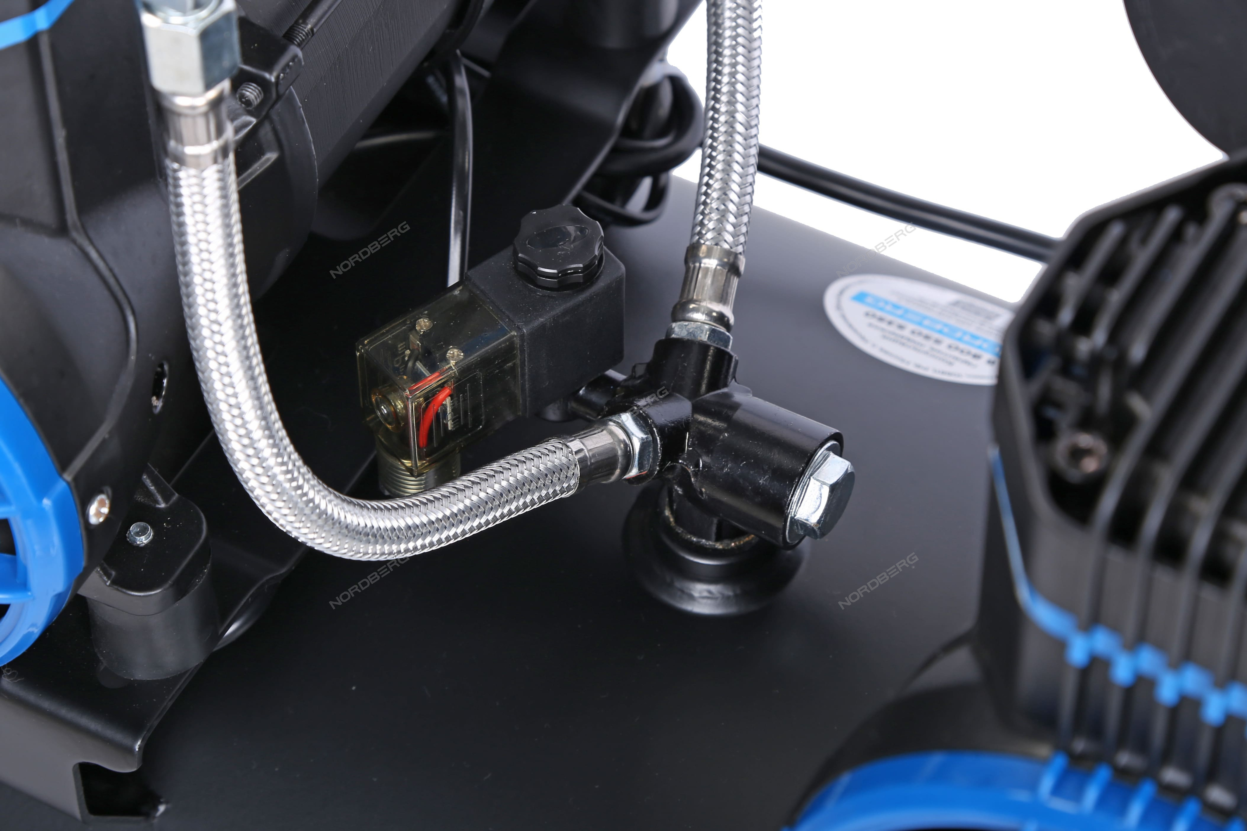 - Электромагнитный клапан автоматически сбрасывает давление в магистралях, после выключения компрессора;