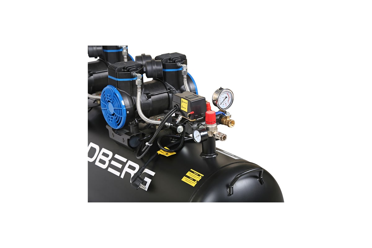 Безмасляный компрессор – отличное решение для применения с краскопультами, продувочными пистолетами и прочим оборудованием. При его использовании нет необходимости устанавливать дополнительные фильтры в воздушную магистраль для улавливания масляной взвеси, в отличие от масляных компрессоров, в результате работы которых на внутренних поверхностях магистралей, шлангов и оборудования могут откладываться продукты разложения масла, уменьшающие пропускную способность и производительность компрессора.В конструкции поршневых групп безмасляных компрессоров NORDBERG используются тефлоновые поршневые кольца с низким коэффициентом трения и высокой стойкостью к износу. За счёт этого температура в цилиндрах и головке цилиндра, всегда остаётся на приемлемом уровне, что позволяет компрессору работать без остановки более продолжительное время по сравнению с другими типами поршневых компрессоров. Компрессор позволяет запускать компрессорные группы как вместе, так и по раздельно, для получения необходимых параметров производительности.