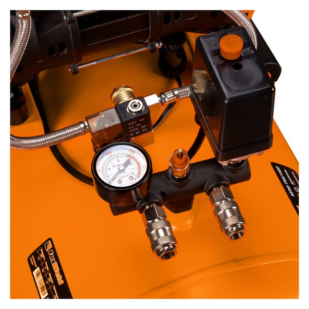 Безмасляный компрессор AERO 750/150F специально разработан для производства чистого сжатого воздуха без примесей масла и совместного использования с пневматическими инструментами (покрасочные работы компактными краскораспылителями и аэрографами, продувочные пистолеты), а также с иным пневмоинструментом, подходящим по давлению и расходу воздуха. Отсутствие масла в сжатом воздухе позволяет добиться идеального качества обрабатываемой поверхности. Безмасляные компрессоры не требуют постоянного обслуживания и контроля, благодаря чему прекрасно зарекомендовали себя на рынке. Для удобства транспортировки AERO 750/150F оснащен двумя удобными ручками и четырьмя колёсами для транспортировки.
