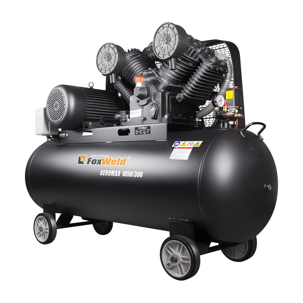 Ременной компрессор Foxweld AEROMAX 1050/300 5888 оборудован ресивером большого объема (300 литров), что существенно сокращает частоту отключений агрегата при падении давления до минимального значения. Четыре колеса обеспечивают мобильность компрессора на рабочей зоне. Данная модель подходит для профессиональной эксплуатации в условиях производственного цеха, шиномонтажной мастерской и строительной площадки. Наличие указателя уровня масла в системе позволяет своевременно проводить обслуживание агрегата.