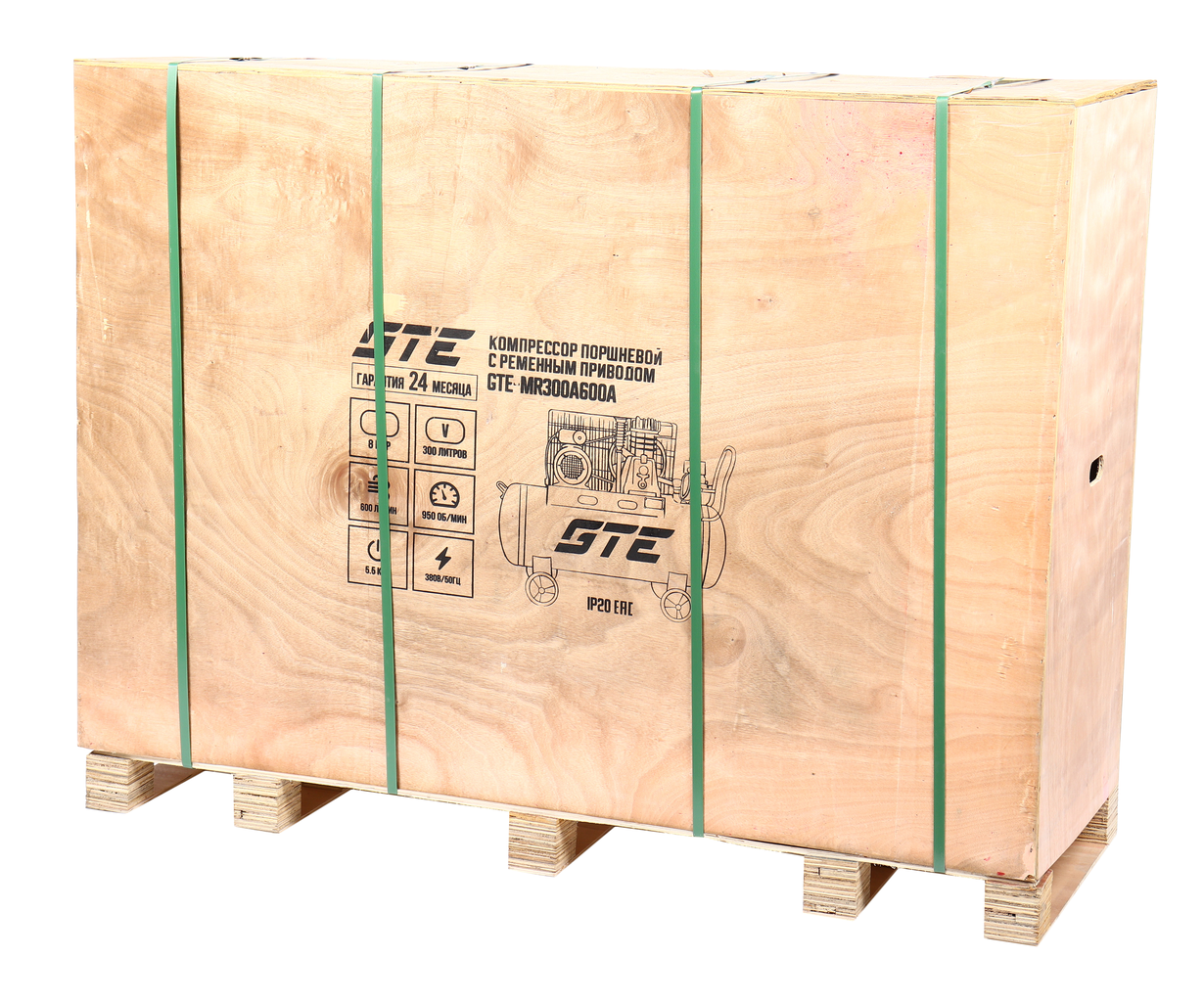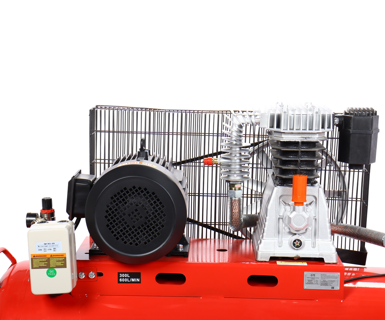 Поршневой компрессор GTE_MR300A600A с ременным приводом — мощное промышленное решение для интенсивных нагрузок. Модель рассчитана на сеть 380 В и обеспечивает производительность 600 л/мин при рабочем давлении до 8 бар. Вместительный ресивер на 300 л создаёт значительный запас сжатого воздуха, минимизируя частоту включений двигателя и продлевая его ресурс.