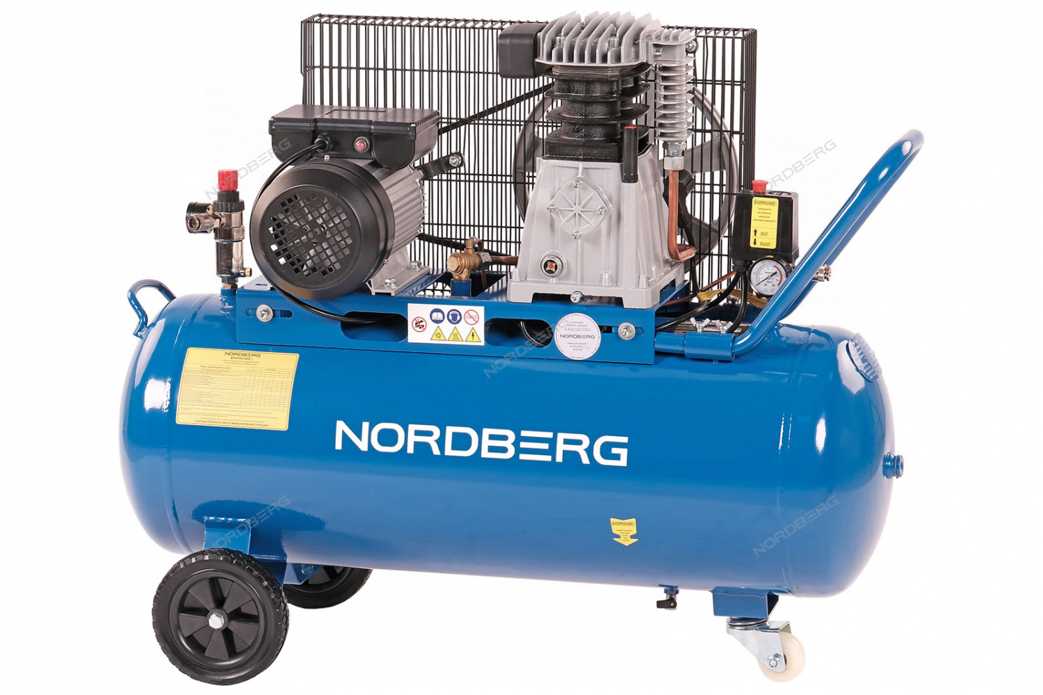 Поршневой компрессор с ресивером NORDBERG NCE100/480 – промышленное оборудование для применения с пневмоинструментами в автосервисных мастерских и для использования в бытовых целях.