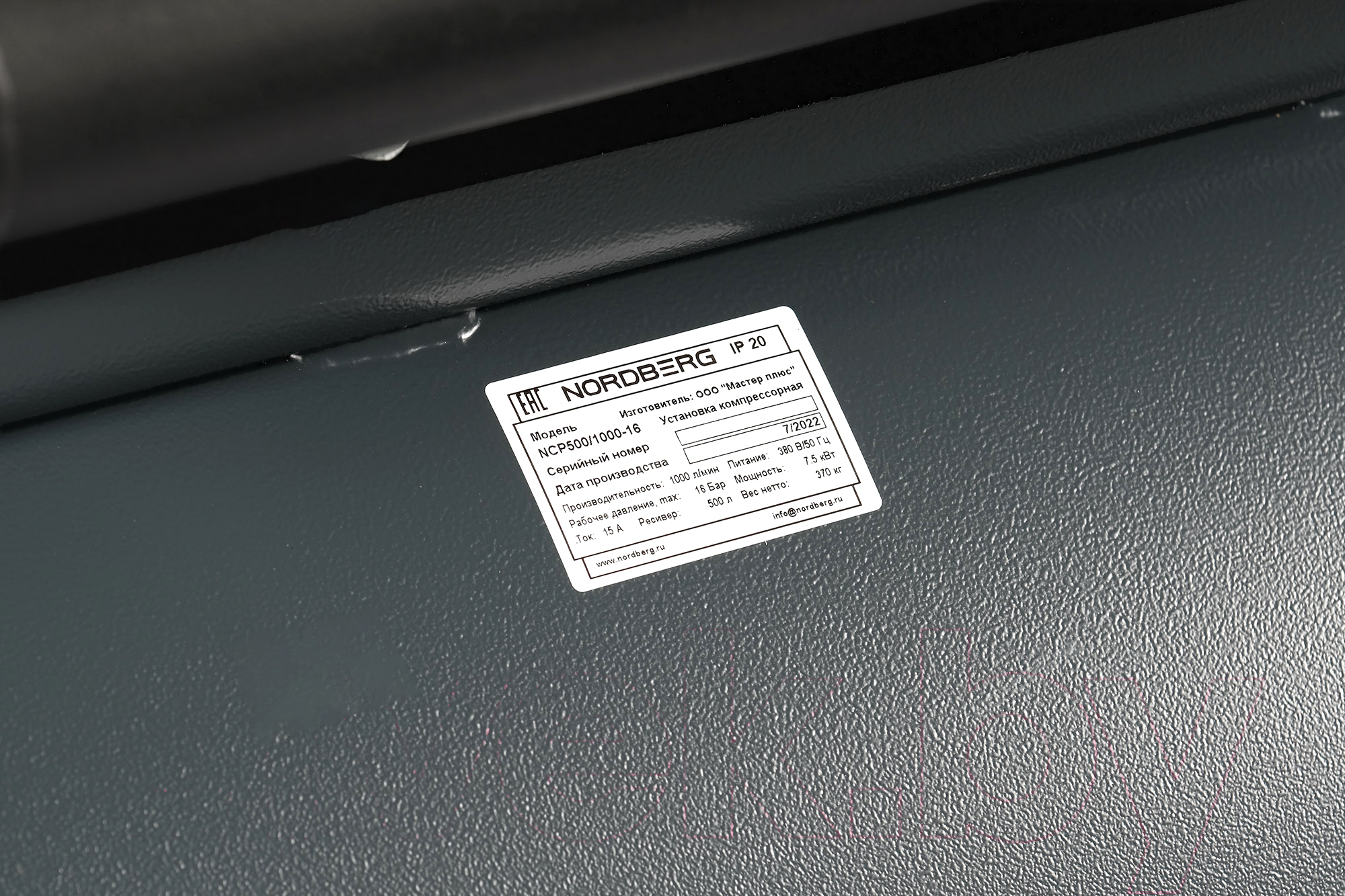 - Вместительный ресивер объемом 500 литров