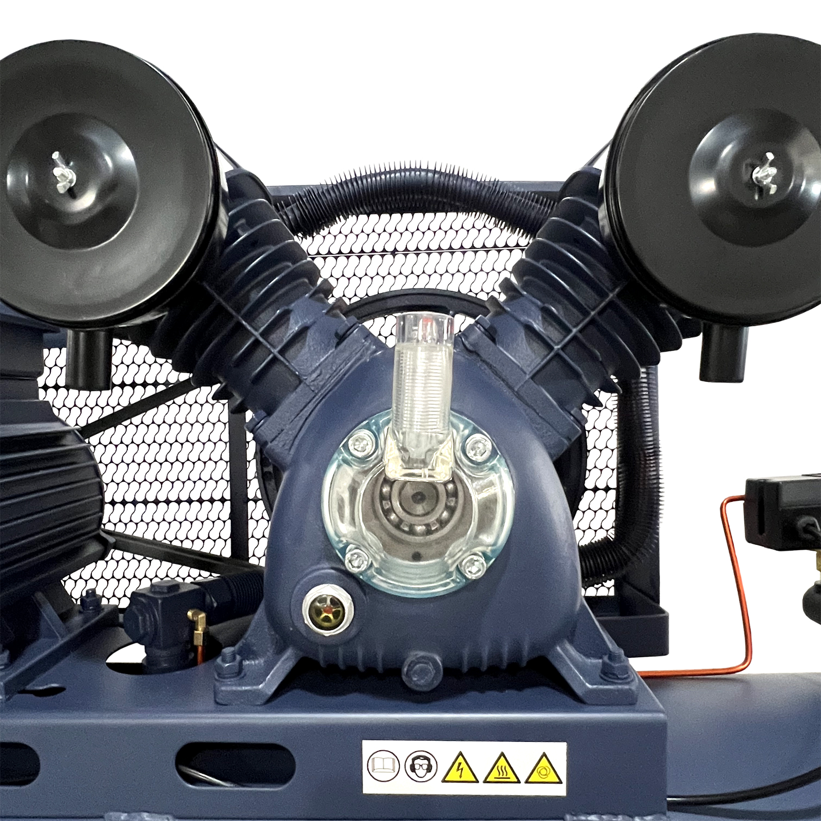 Он оснащен встроенной защитой от перегрева и клапаном экстренного сброса давления при чрезвычайных ситуациях. Продуманная конструкция гарантирует высокую производительность и эффективность работы. Для воздушного компрессора также предусмотрены регулятор давления и индикатор уровня масла.