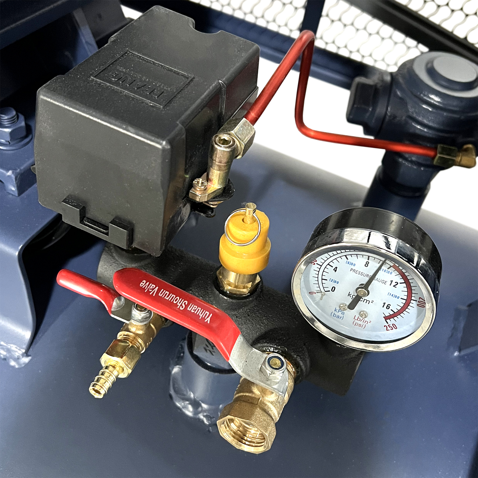 - Регулятор давления позволяет контролировать процесс нагнетания воздуха.