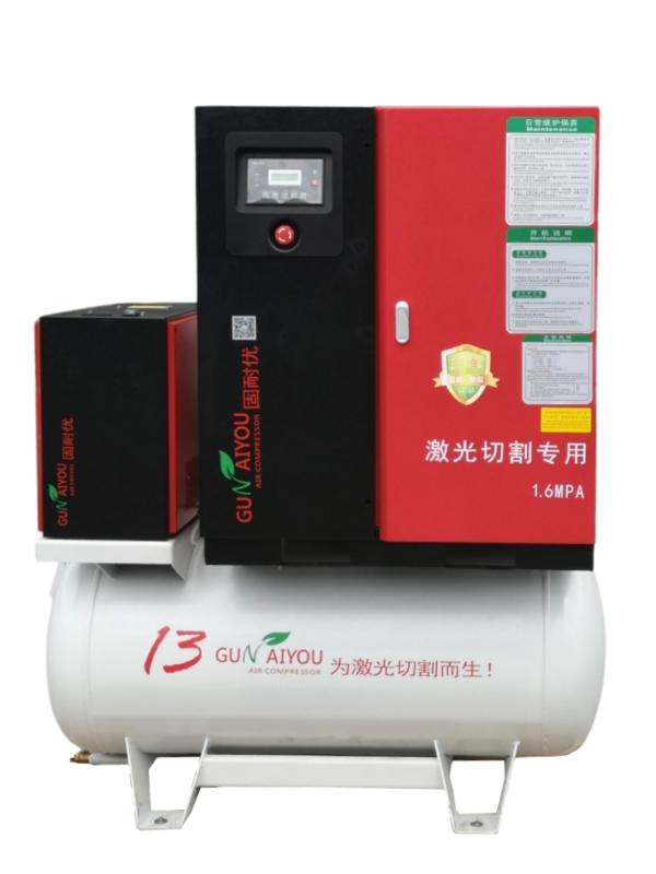 Gunaiyou TG-15CTAS-16-500 оснащен безмасляной винтовой технологией, которая исключает попадание масляных частиц в рабочую среду. Это особенно важно для лазерной резки, где любые примеси могут снизить точность обработки и привести к загрязнению оптики.